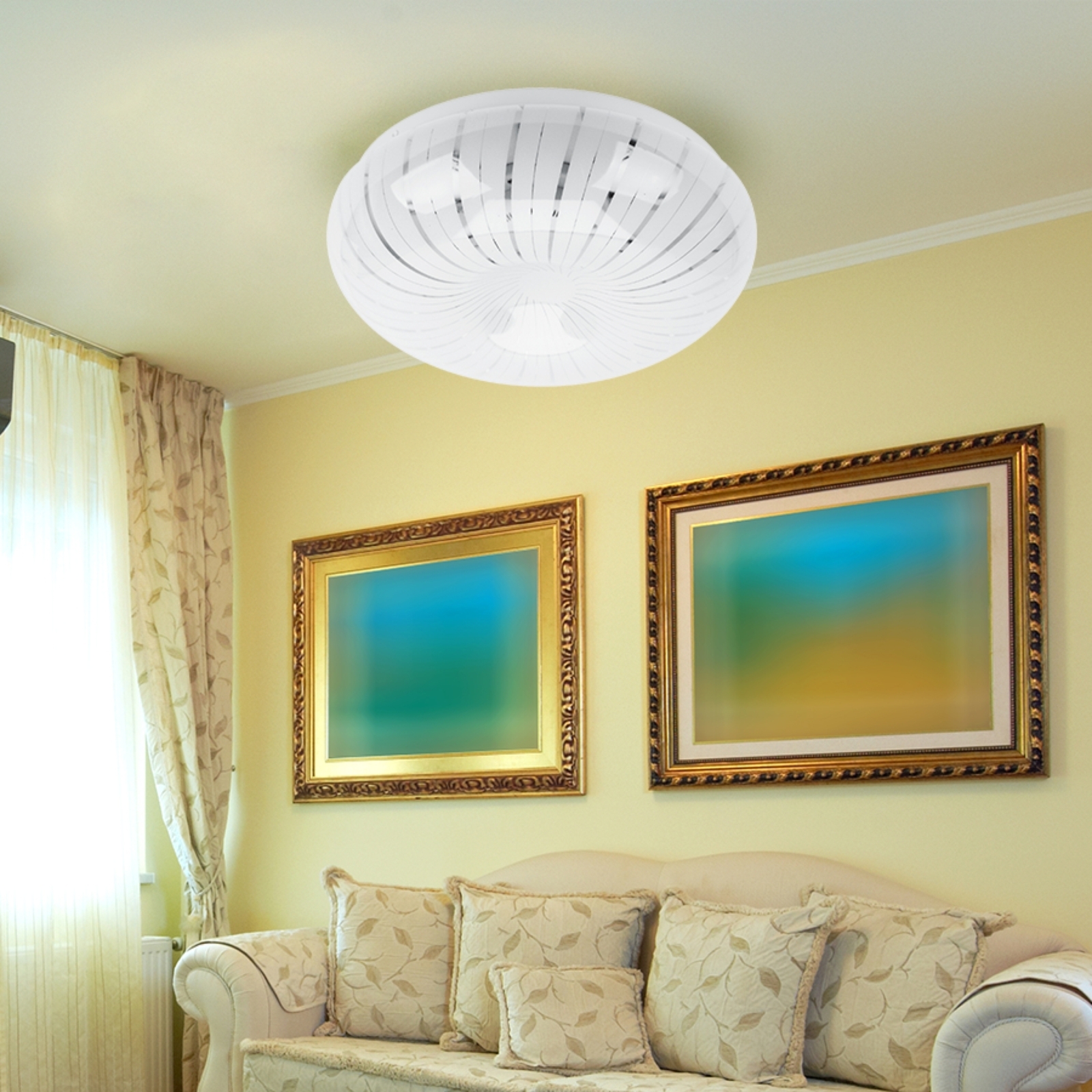 Плафон с узором-медузой идеально сочетается с выпуклым круглым корпусом. Эксклюзивный дизайн позволяет увеличить количество вариантов использования LED люстры. Изящное потолочное освещение получится обустроить в гостиной, прихожей или спальне.
