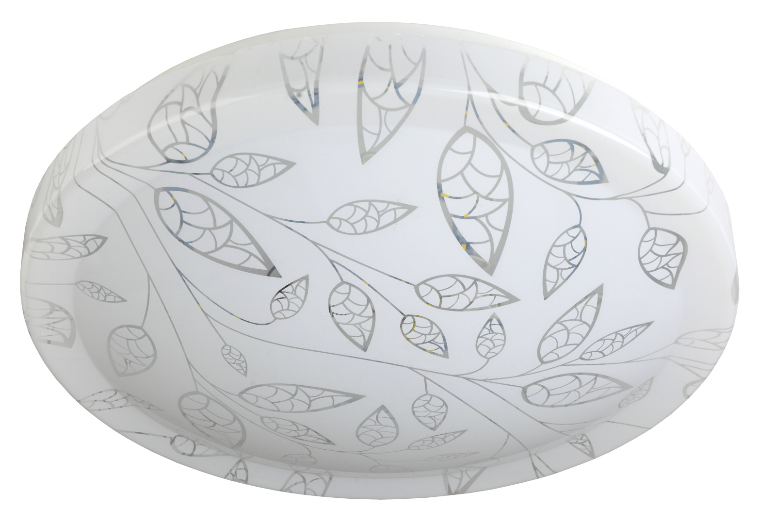 Плафон LED люстры декорирован изящным узором. Нежные ветки с лепестками гармонично смотрятся на круглом плоском корпусе. Такой светильник прекрасно подойдет для оформления гостиной, коридора, спальни или детской.