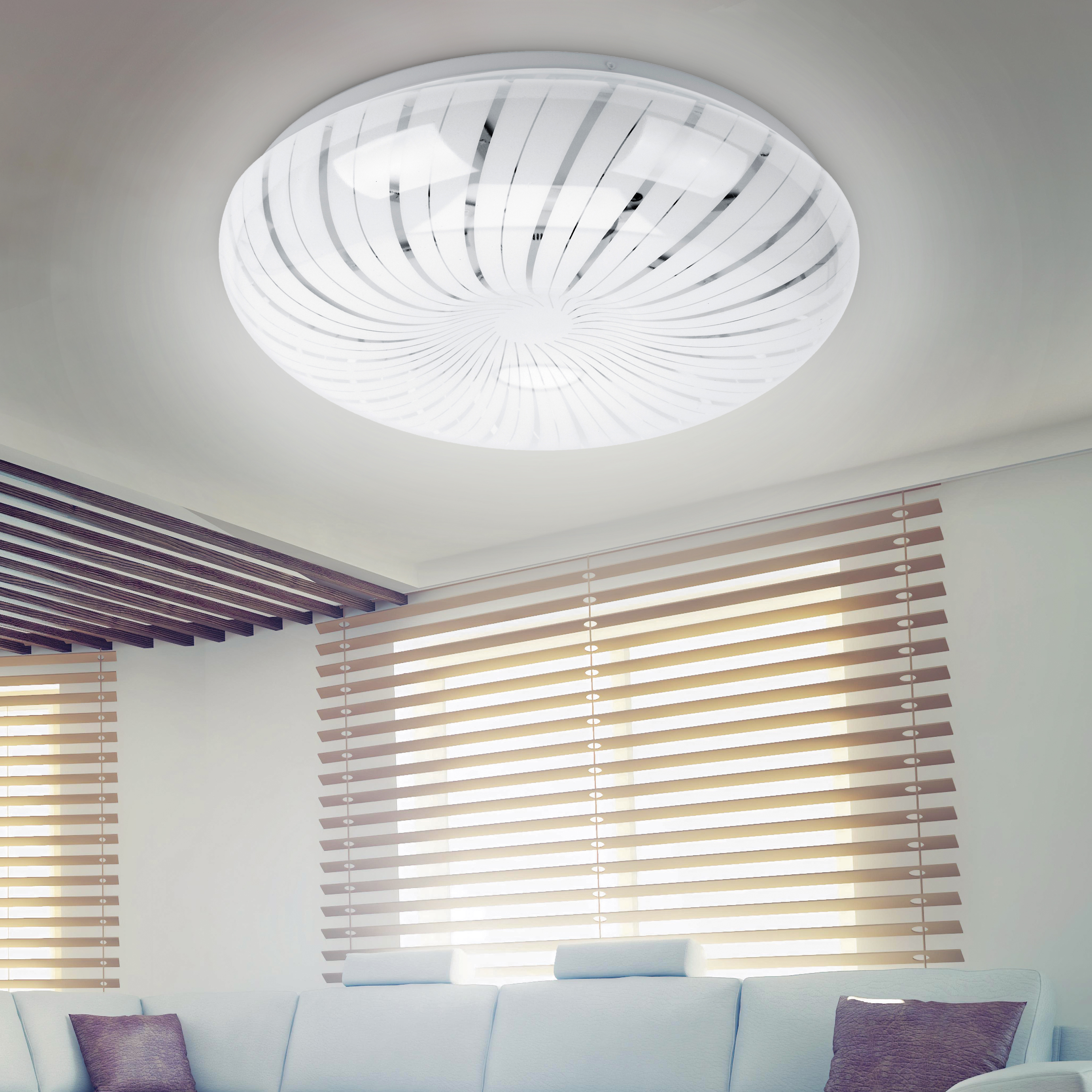 Благодаря плафону из матового пластика обеспечивается равномерное распределение света. В совокупности со световой температурой в 4000 К создается приятное белое свечение, защищающее глаза.