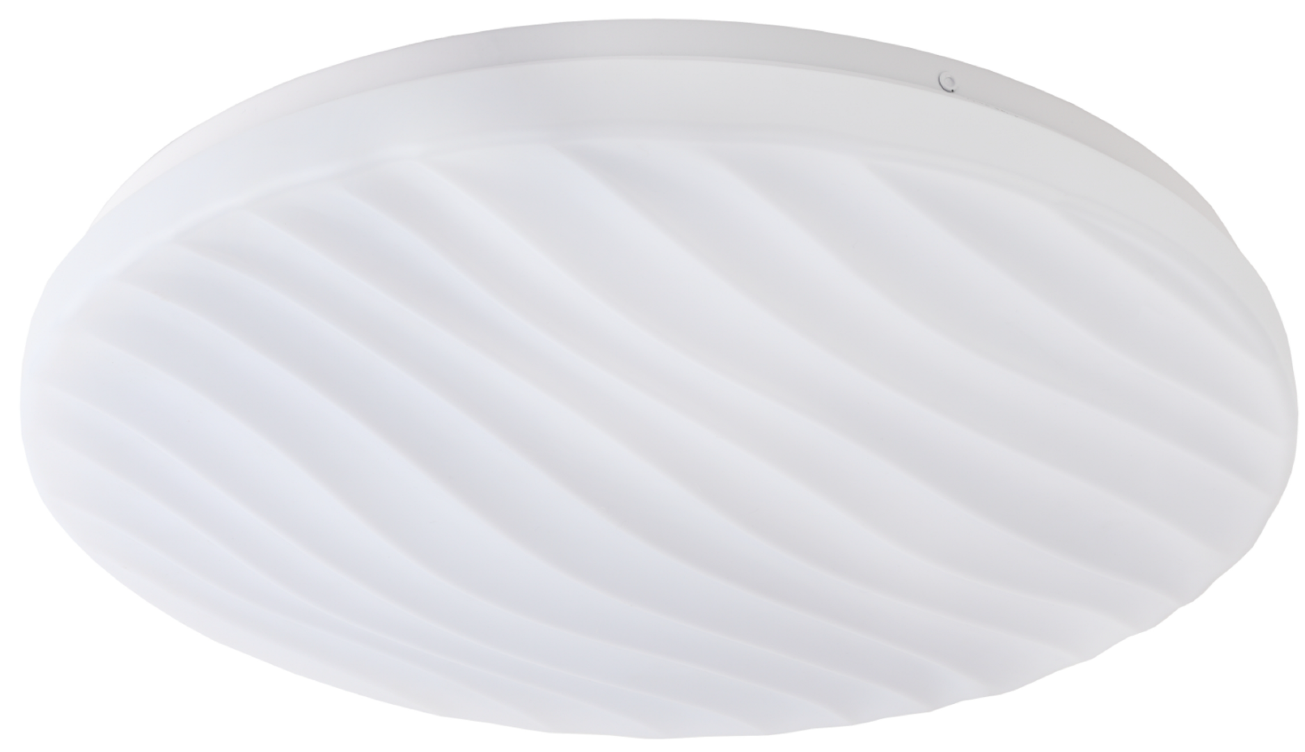 Он устойчив к повреждениям и имеет долгий срок службы. Рельефный дизайн рассеивателя, напоминающий морские волны, идеально сочетается с круглым плоским корпусом. За счет этого электросветильник освежит интерьер гостиной, спальни или прихожей.