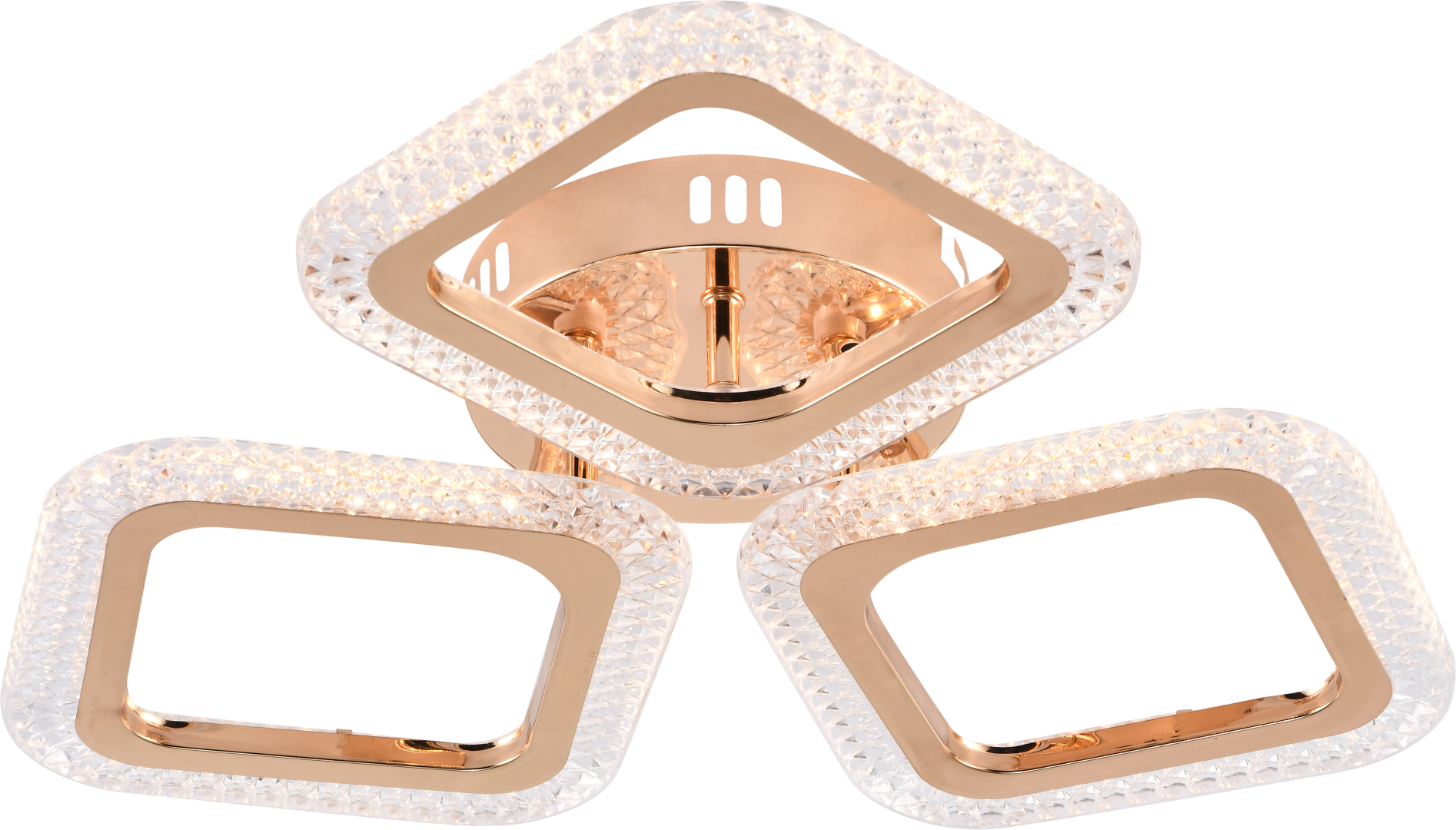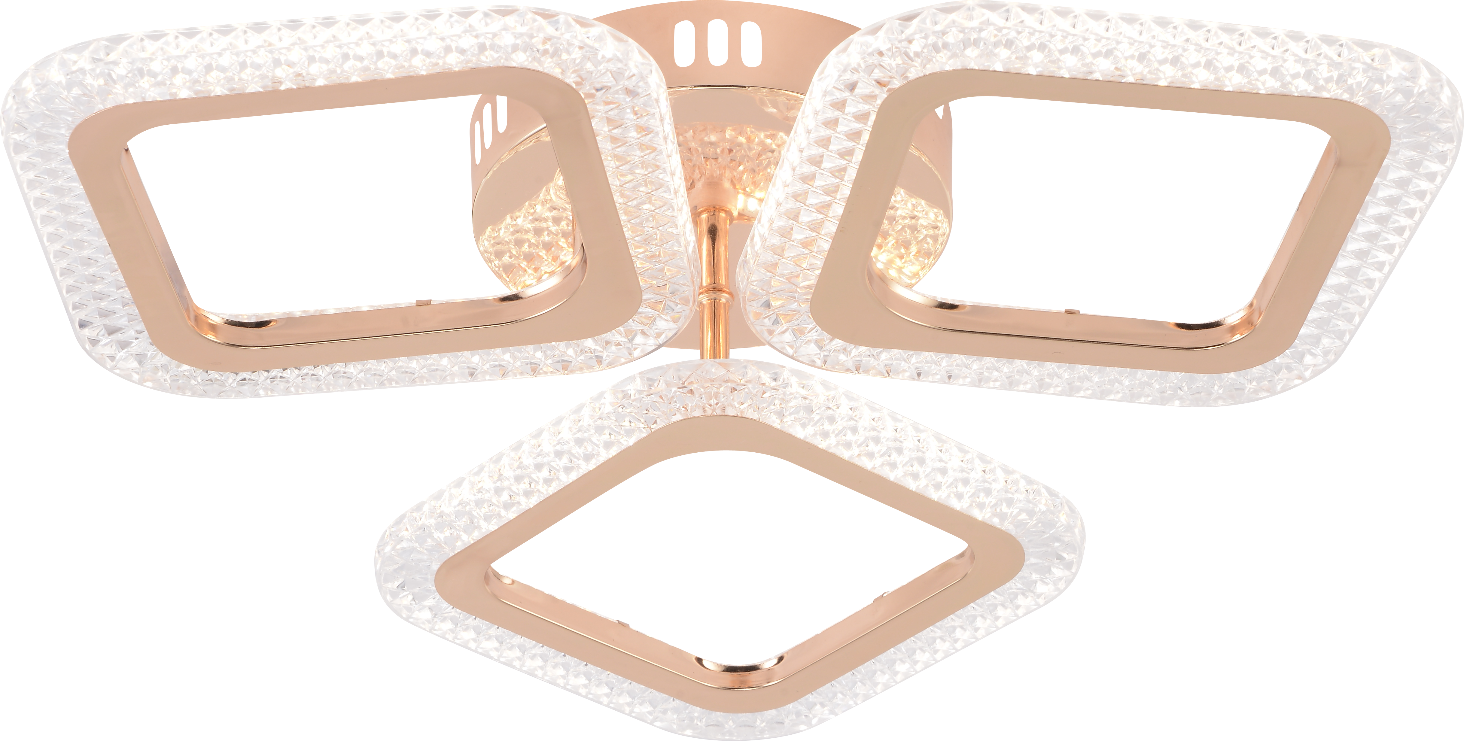 Серия стильных потолочных светодиодных светильников золотого цвета с квадратными рассеивателями и эффектным рельефным акрилом. Оснащены пультом дистанционного управления для удобной регулировки яркости и режимов освещения. Мощность моделей — от 48 до 64 Вт. Идеальное сочетание элегантного дизайна и функциональности для современного интерьера.