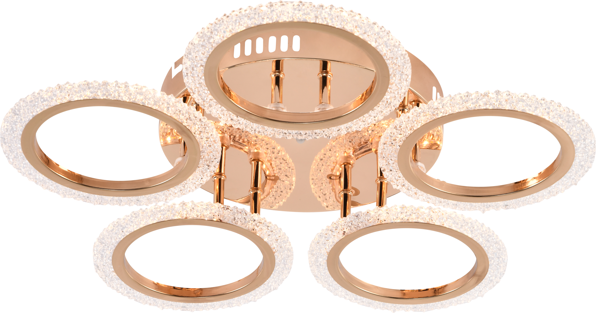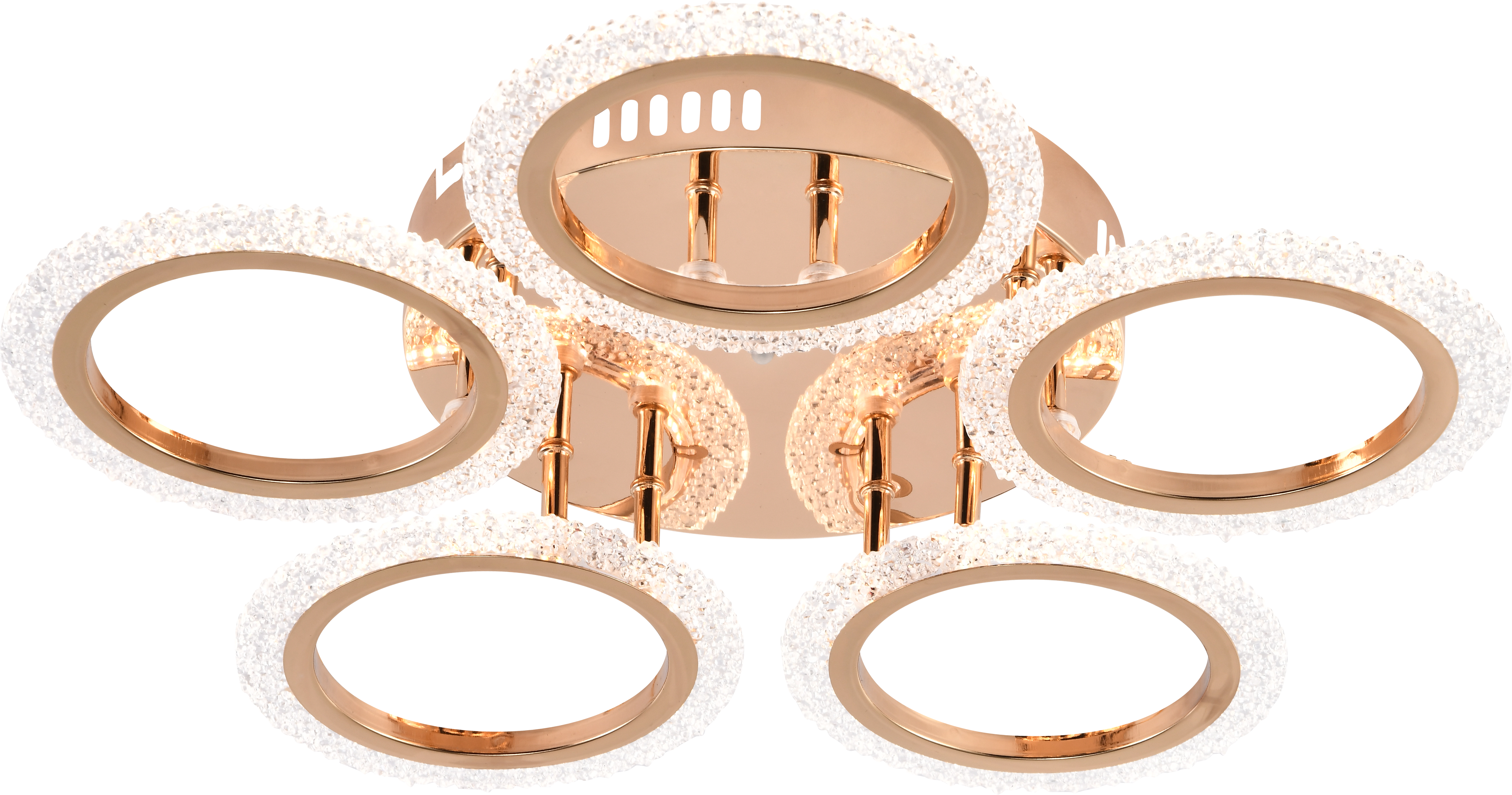 Серия потолочных светодиодных светильников в форме колец с элегантным золотым покрытием и рельефным акрилом. Оснащены пультом ДУ для регулировки яркости и режимов освещения. Мощность — от 42 до 70 Вт. Современный дизайн и удобство управления для стильного интерьера.