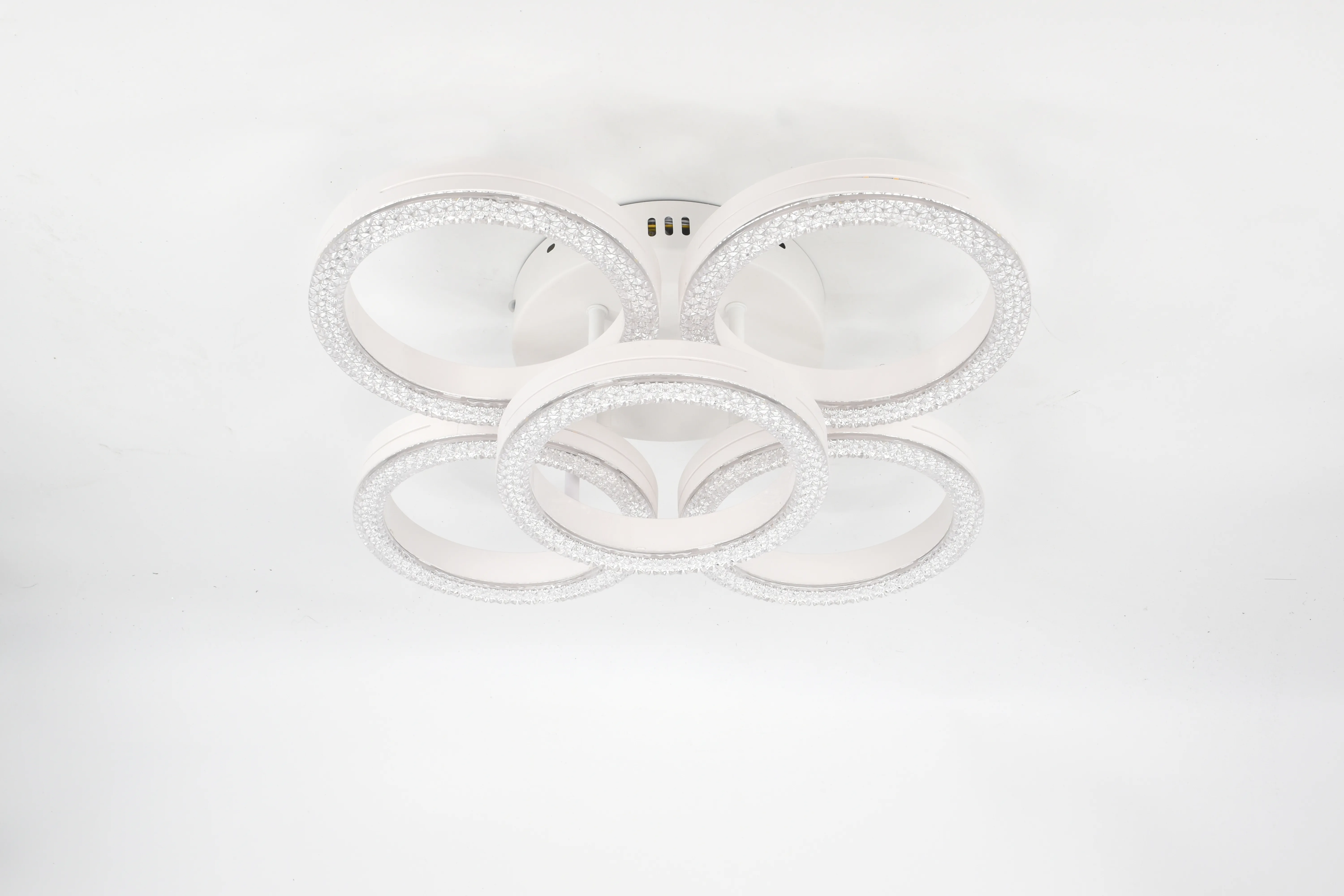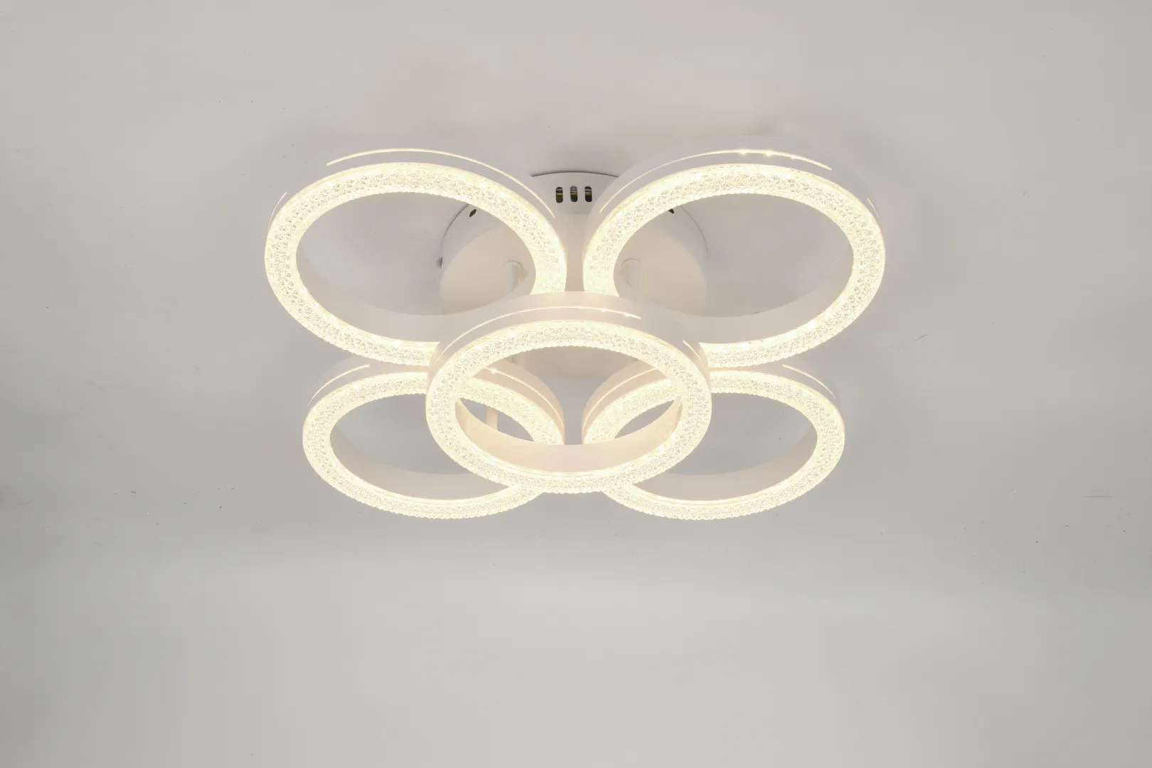 Серия потолочных светодиодных светильников-колец в белом цвете с рельефным акрилом. Мощность 75 Вт, регулируемая цветовая температура от 3000 до 6000К. В комплекте пульт дистанционного управления для удобной настройки освещения. Стильное и функциональное решение для современного интерьера.