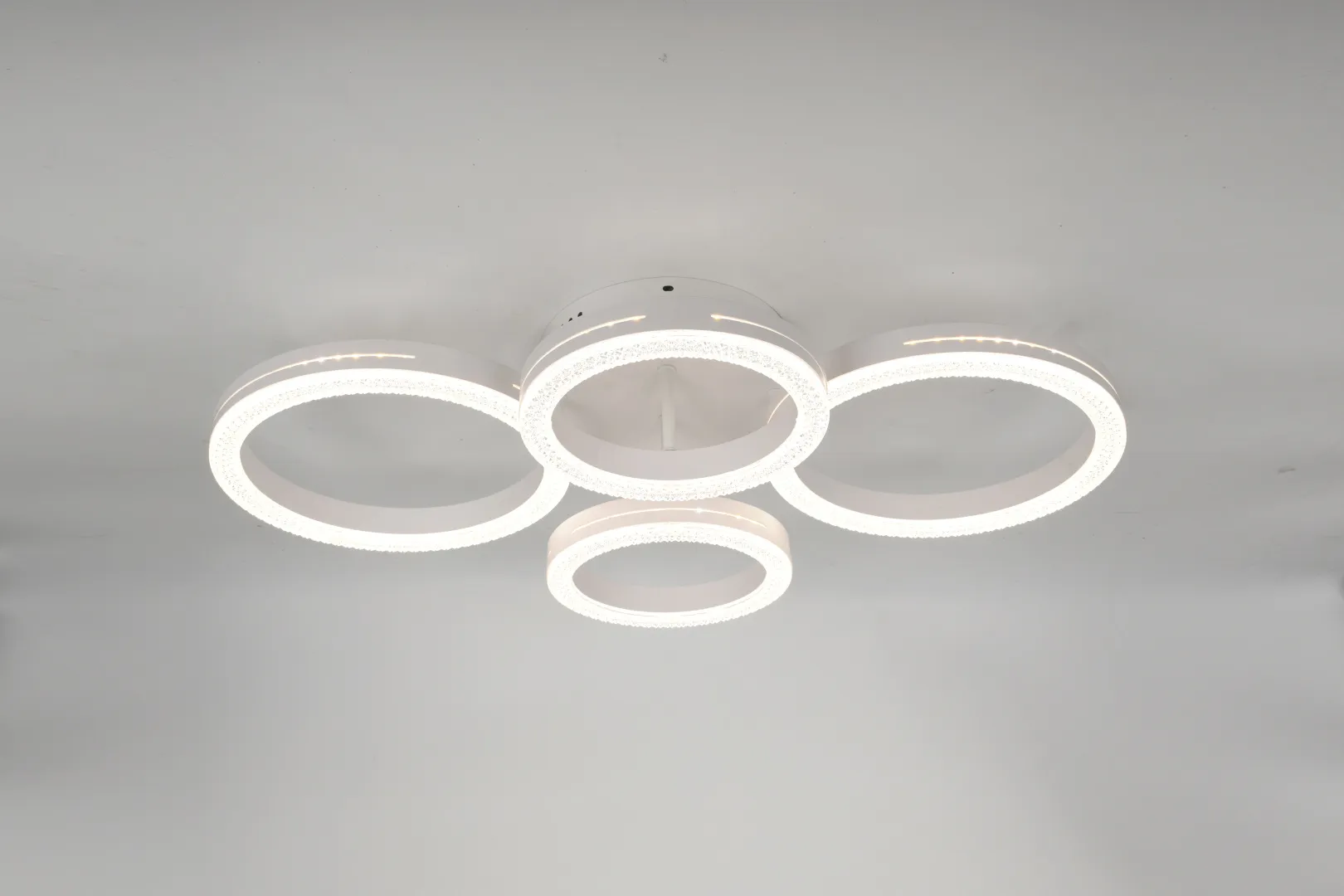 Серия потолочных светодиодных светильников-колец в белом цвете с рельефным акрилом. Мощность 75 Вт, регулируемая цветовая температура от 3000 до 6000К. В комплекте пульт дистанционного управления для удобной настройки освещения. Стильное и функциональное решение для современного интерьера.