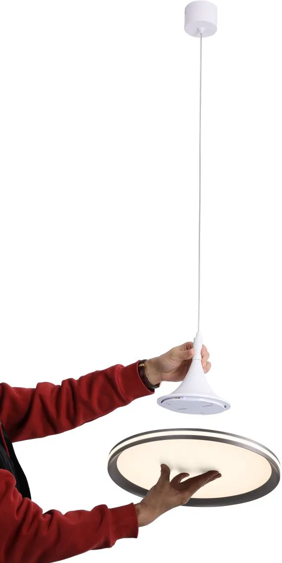 Люстра потолочная коллекции ALUMIN выполнена из анодированного алюминия чёрно-серого цвета. Матовый рассеиватель изготовлен из оптического полимера. Существует возможность сделать светильник подвесным при помощи дополнительного крепления. Модель этой коллекции комплектуется пультом дистанционного управления 2,4G и драйвером высокого качества европейского стандарта, обеспечивающими переключение трех режимов световой температуры и диммирование.