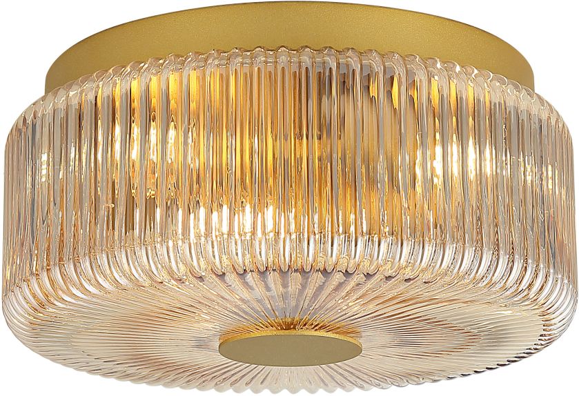 Светильник потолочный настенный коллекции Senza выполнен из металла и окрашен в цвет золота. Плафон выполнен из прозрачного стекла линейной текстуры цвета шампань. Особенностью даннои? коллекции является возможность их установки как на потолок, так и на стену. Высокое качество изготовления и современная форма светильника идеально подои?дут как в классические, так и современные интерьеры.