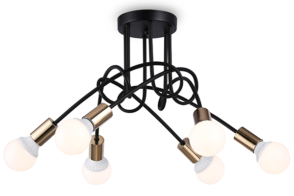 Потолочный светильник из коллекции TRADITIONAL. Модель TR80419 представлена в современном стиле лофт. Светильник выполнен из черного и золотого металлического каркаса. Для данной модели подойдут лампы с цоколем Е27. Светильник будет прекрасным дополнением в любом помещении.