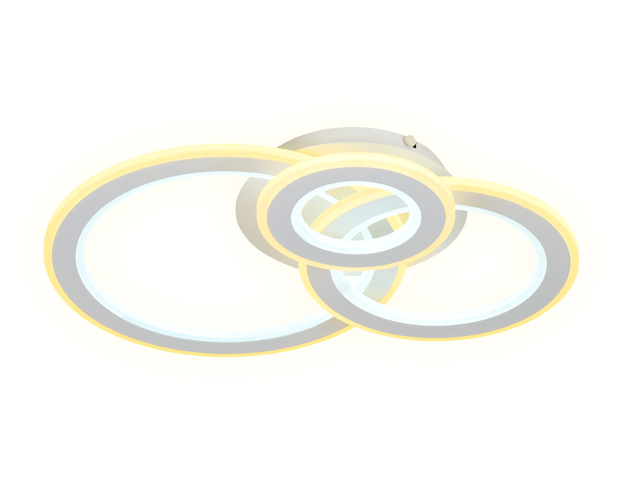 Потолочный светодиодный светильник из серии ACRYLICA, коллекция Original. Ультрасовременная модель FA861 выполнена в современном стиле Хай-тек. Светильник формы пересечения трех кругов, белого цвета, изготовлен из акрила и металлического корпуса. В конструкцию этого светильника уже встроены светодиоды, что исключает поиск или замену дополнительных ламп. С помощью мобильного приложения PC.Lamper, а так же радиоуправляемого пульта вы сможете регулировать цветовую температуру, яркость освещения и ночной режим. Модель FA861 подходит для натяжных потолков и будет прекрасным дополнением в гостиной, спальне или детской комнате.