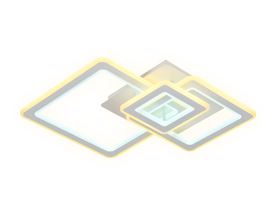 Потолочный светодиодный светильник из серии ACRYLICA, коллекция Original. Ультрасовременная модель FA862 выполнена в современном стиле Хай-тек. Светильник формы пересечения трех квадратов, белого цвета, изготовлен из акрила и металлического корпуса. В конструкцию этого светильника уже встроены светодиоды, что исключает поиск или замену дополнительных ламп. С помощью мобильного приложения PC.Lamper, а так же радиоуправляемого пульта вы сможете регулировать цветовую температуру, яркость освещения и ночной режим. Модель FA862 подходит для натяжных потолков и будет прекрасным дополнением в гостиной, спальне или детской комнате.
