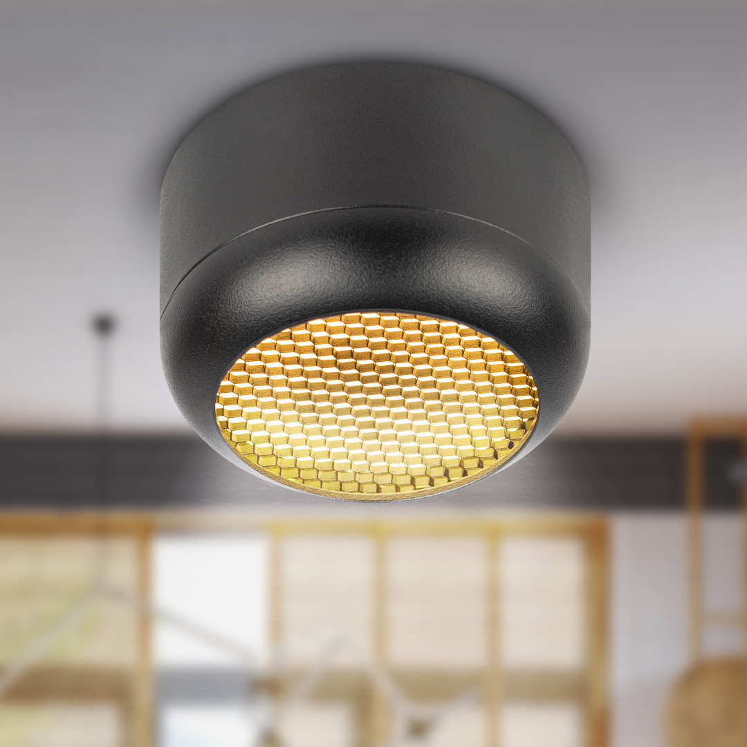 Накладной светильник OL56 BK делает помещение зрительно более стильным и интересным. Используя по периметру несколько однотипных осветительных устройств, можно сформировать интересные световые геометрические рисунки. Цоколь для источника света GX53, напряжение питания ~230В 50/60Гц, материал металл, цвет светильника черный, размер D83х50мм, максимальная мощность лампы 15Вт, степень защиты IP20