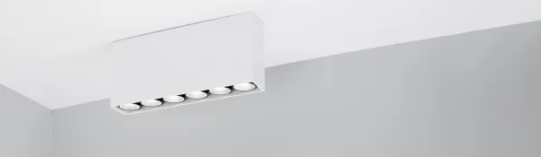 Накладной интерьерный светильник. Мощность 15 Вт, св. поток 958 лм, 68 лм/Вт, теплый 3000 K, CRI>98, угол 30°, напряжение питания 230 В. Белый квадратный корпус из алюминия, степень защиты IP20. Размер: длина 186 мм, ширина 35 мм, высота 88 мм. Монтаж накладной. Драйвер 13-21 В, 700 мА, пульсация <5%.