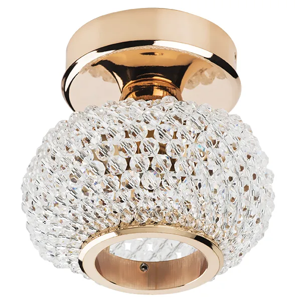 Крепление: D75 a68; Внешние габариты: D115 H100; Материал - основание/плафон: металл / Crystalline; Цвет-основание/плафон: золото/прозрачный; Лампа: 220В G9 max 40Вт;