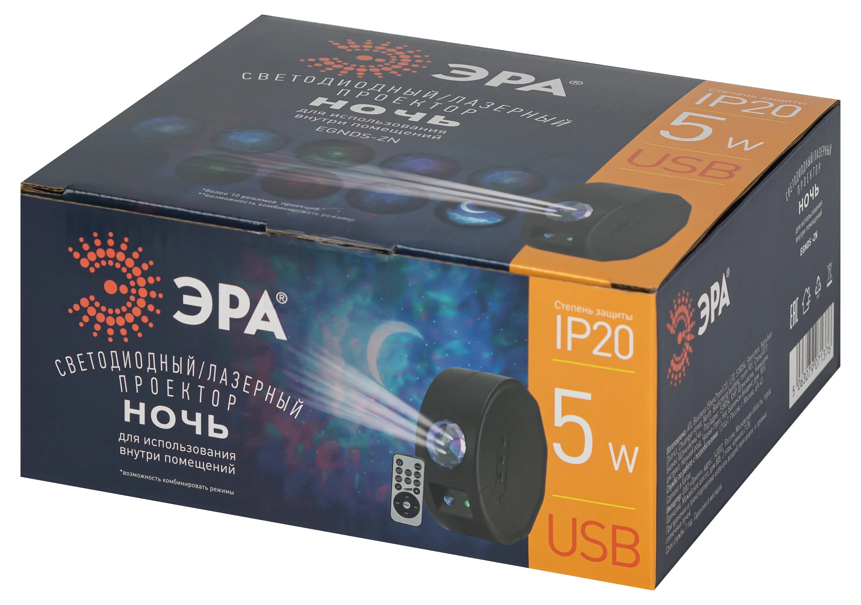 EGNDS -ZN ЭРА Проектор Ночь, лазерный, динамичный, ПДУ, IP20, USB, 220В