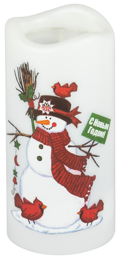 Декоративная светодиодная свеча с функцией проектора - ЭРА EGNDS-SN "Снеговик" (арт. Б0060552). Встроенные в светильник светодиоды светят уютным тёплым светом. Режим проектора "включает" на потолке снегопад. Высота светильника - 15 см. Работает от 3 мизинчиковых батареек. Новогодний светильник за считанные секунды создаёт в доме праздничное настроение. В ассортименте ЭРА представлена также свеча-проектор с рисунком "Санта" - ЭРА EGNDS-SK (арт. Б0060551).