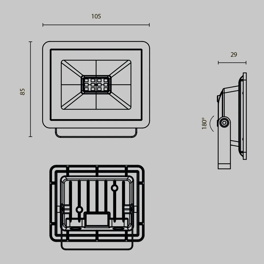 Прожекторы для освещения  экстерьеров, рабочих пространств, производственных и промышленных помещений. Материал корпуса — алюминий. Цвет — чёрный. LED-источник света.  Два варианта цветовой температуры - 4000К и 6500К. Пять размеров с соответствующими вариантами мощности — 10, 30, 50 Вт с датчиком движения. Модели 100 и 150 Вт без датчиков движения. Высокая степень защиты от пыли и влаги IP65.