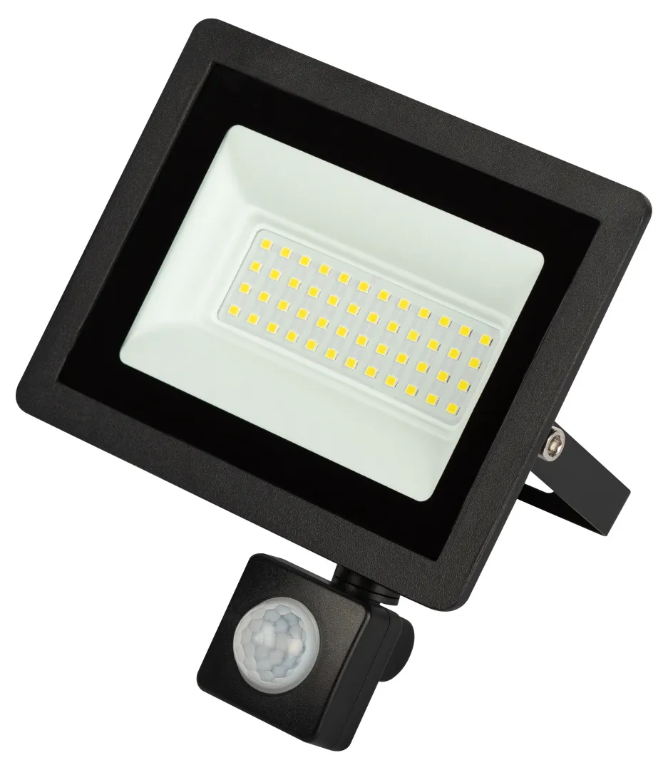 Мощный (50 Вт) светодиодный прожектор серии ЭРА LPR-042-2 с регулируемым инфракрасным датчиком движения. Настраивать можно следующие параметры: временной интервал освещения (от 5 секунд до 8 минут), чувствительность к движению (расстояние 1 — 8 метров), чувствительность ко времени суток (световой поток 5 — 2000 лк). Датчик имеет поворотную конструкцию.