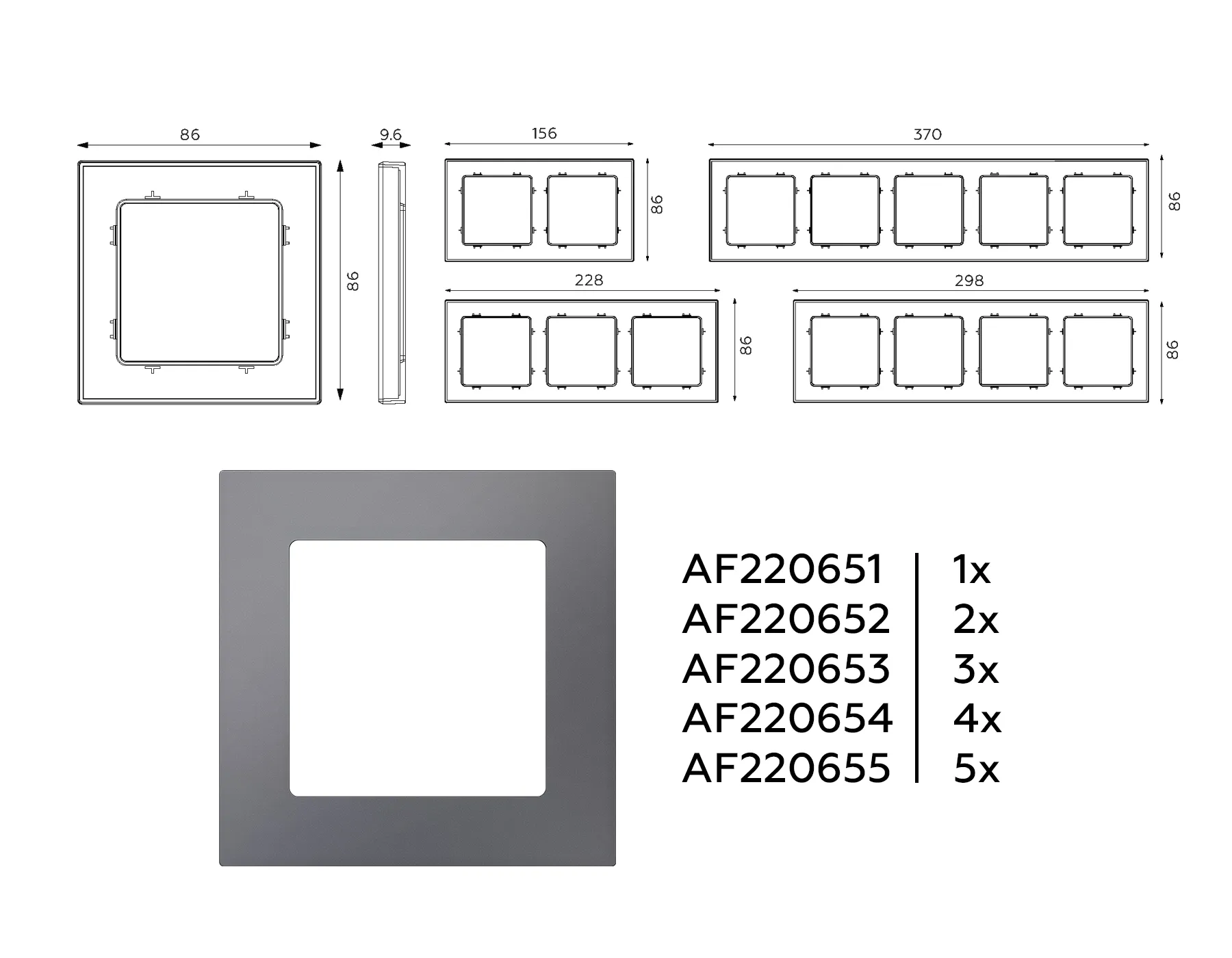 AP9121 Лицевая панель ALFA (Графит мягкое касание) для компьютерной/телефонной двойной розетки RJ-45/RJ-11 QUANT
