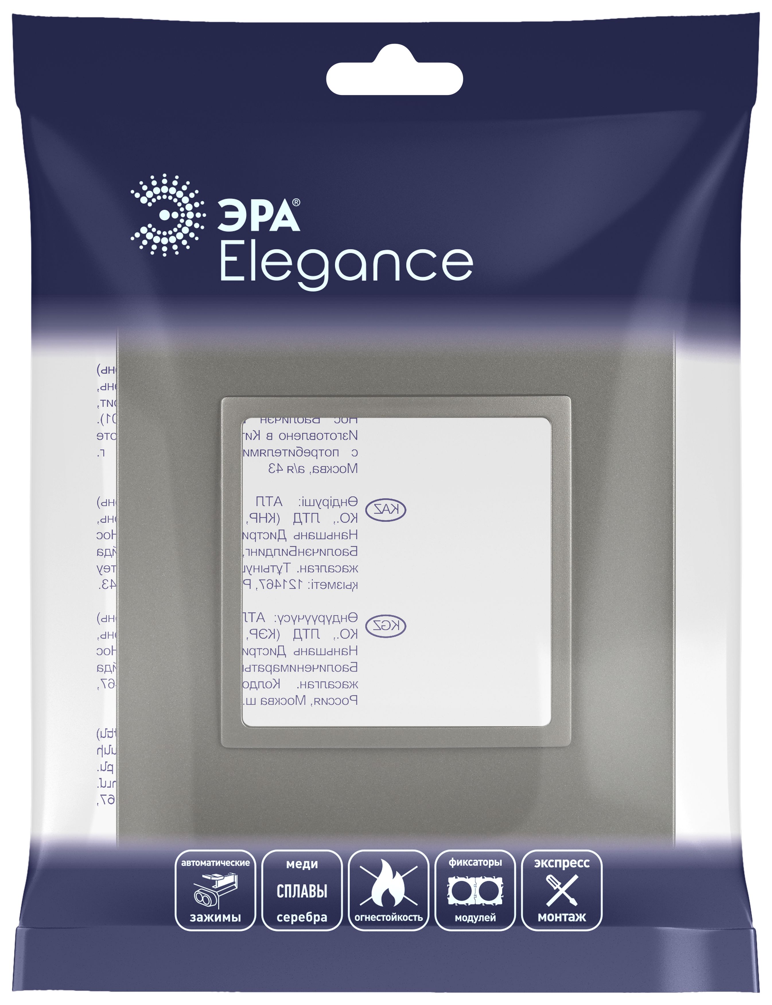 Рамка для выключателей и розеток 1-постовая серии Эра Elegance Classic цвет титан 14-5011-16. Сделана из поликарбоната. Используется только с механизмами серии Эра Elegance. Классический "квадратный" дизайн.