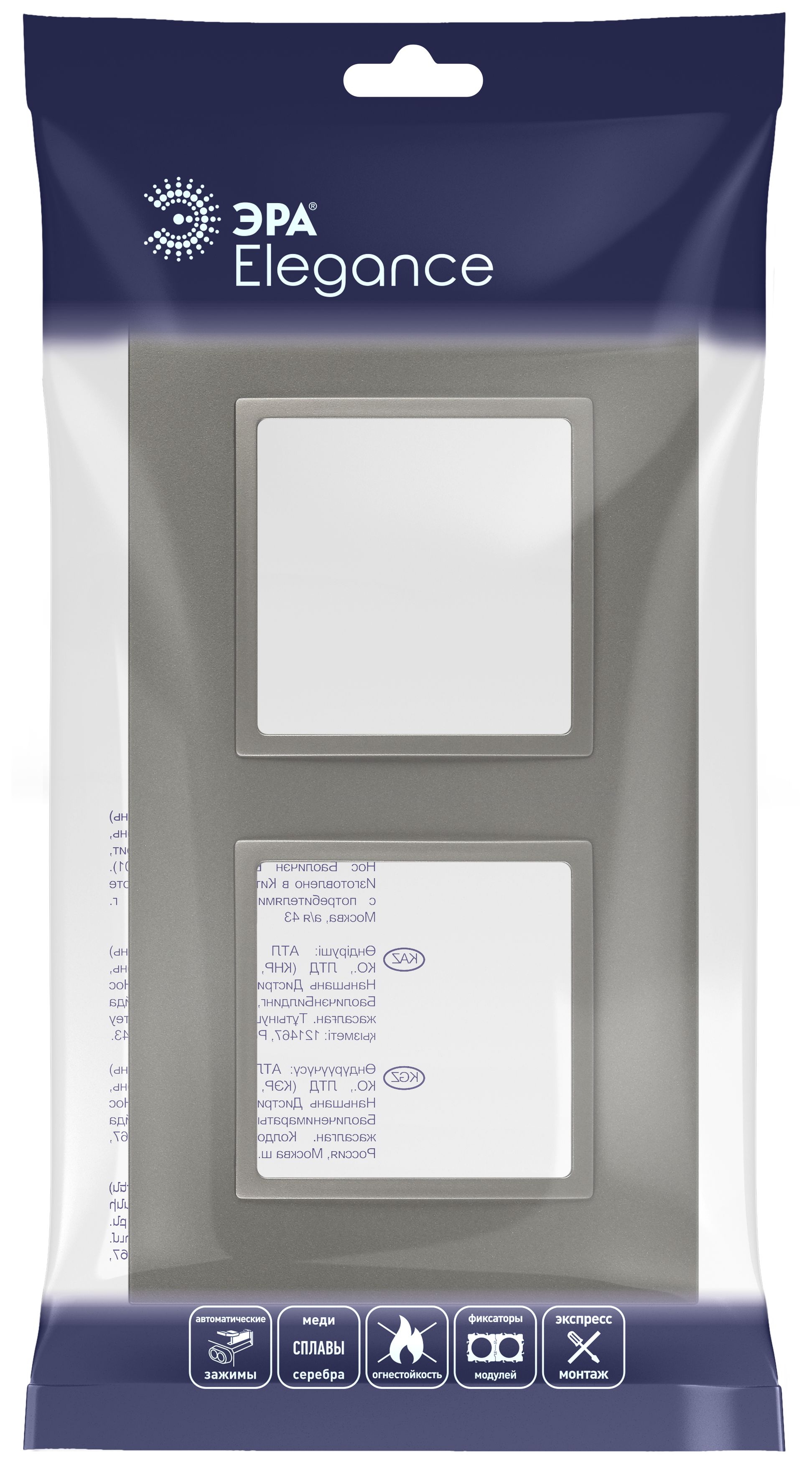 Рамка для выключателей и розеток 2-постовая серии Эра Elegance Classic цвет титан 14-5012-16. Сделана из поликарбоната. Используется только с механизмами серии Эра Elegance. Классический "квадратный" дизайн.