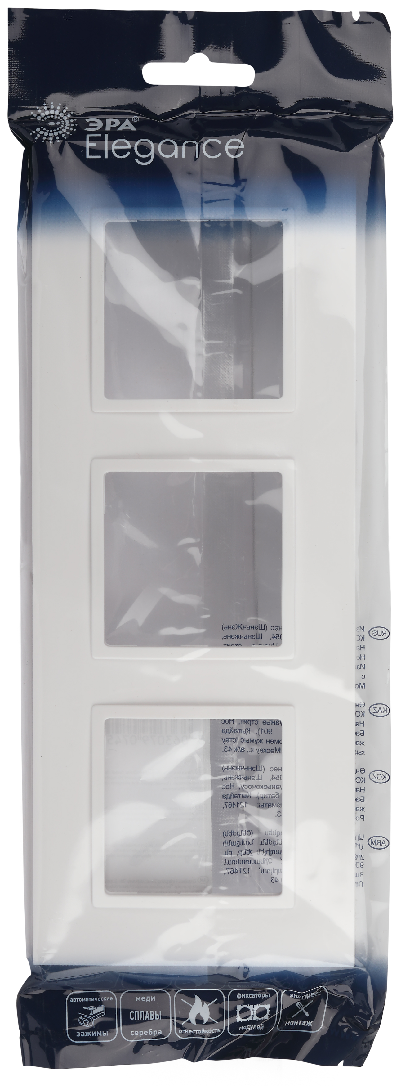 Рамка для выключателей и розеток на 3 поста серии Эра Elegance Classic цвет белый 14-5013-01. Сделана из поликарбоната. Используется только с механизмами серии Эра Elegance.