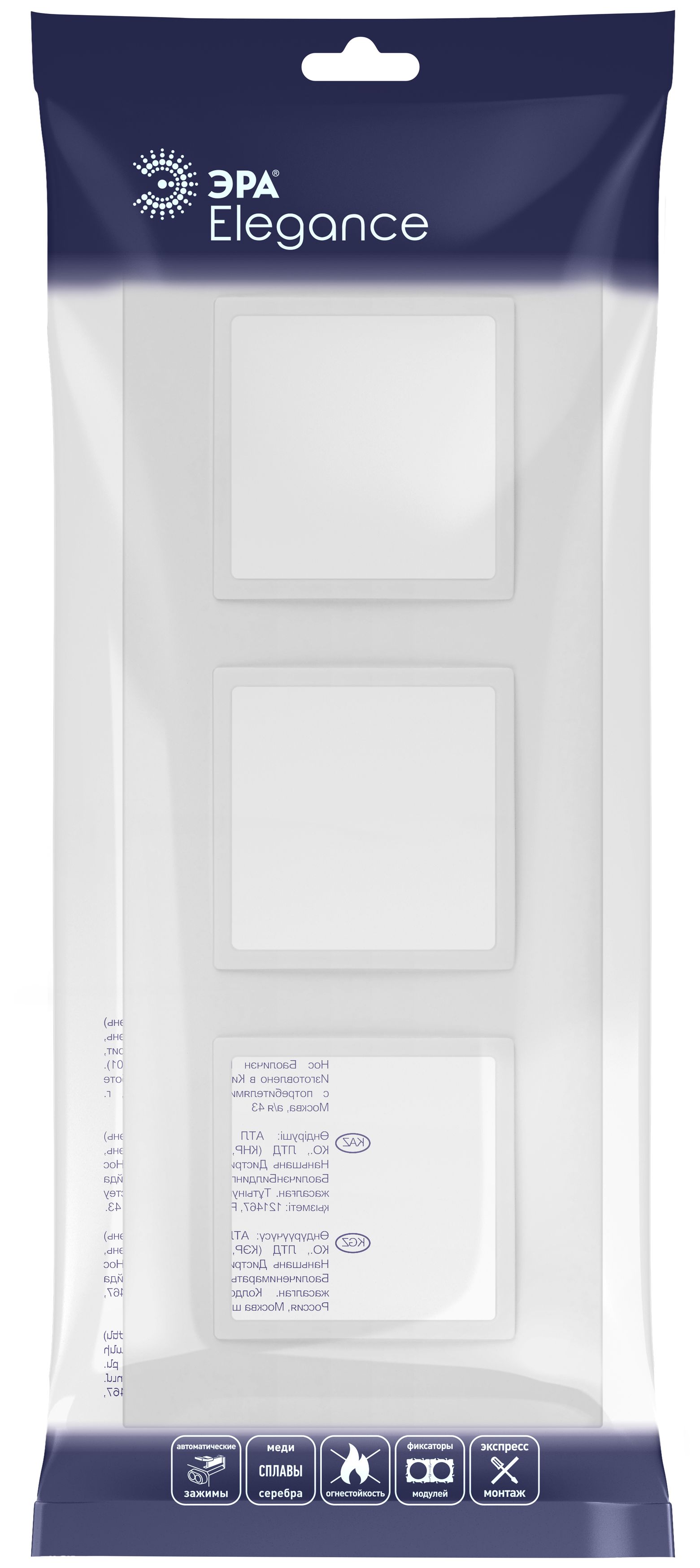 Рамка для выключателей и розеток 3-постовая серии Эра Elegance Classic цвет белый матовый 14-5013-01М. Сделана из поликарбоната. Используется только с механизмами серии Эра Elegance. Классический "квадратный" дизайн.