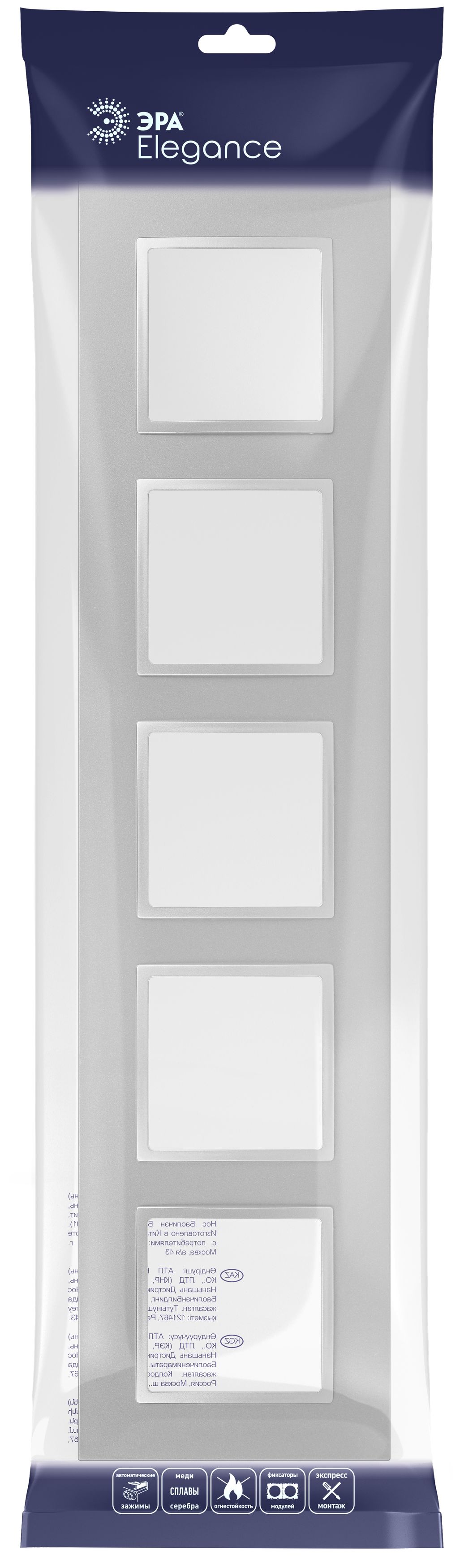 Рамка для выключателей и розеток на 5 постов серии Эра Elegance Classic цвет алюминий 14-5015-03. Сделана из поликарбоната. Используется только с механизмами серии Эра Elegance.