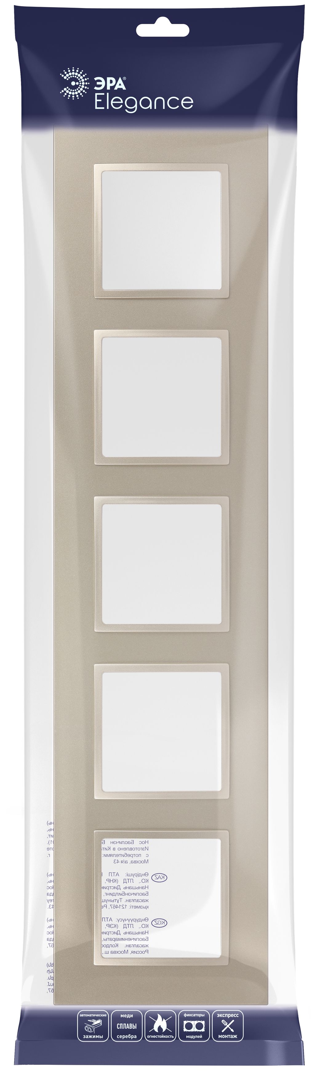 Рамка для выключателей и розеток на 5 постов серии Эра Elegance Classic цвет шампань 14-5015-04. Сделана из поликарбоната. Используется только с механизмами серии Эра Elegance.