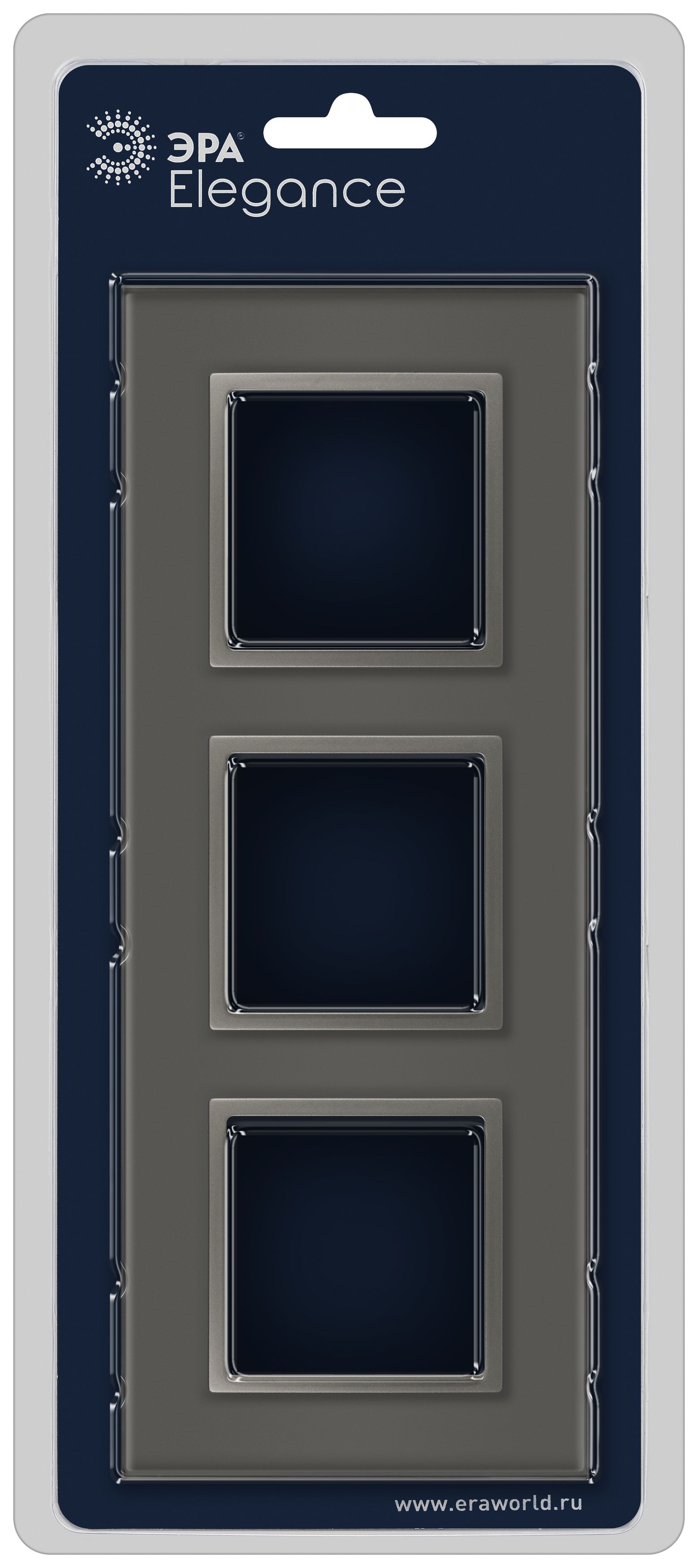 Рамка для выключателей и розеток 3-постовая серии Эра Elegance цвет титан 14-5103-16. Сделана из стекла. Используется только с механизмами серии Эра Elegance