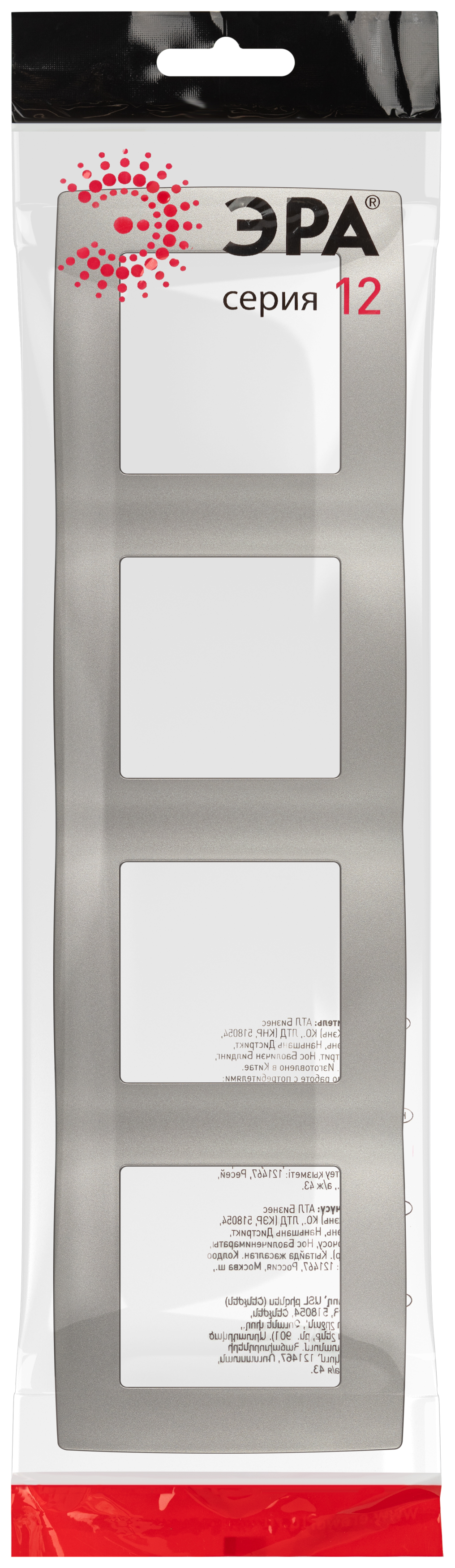 Рамка для выключателей и розеток 4-постовая серии Эра 12 цвет титан 12-5004-16. Сделана из поликарбоната. Используется только с механизмами серии Эра 12.