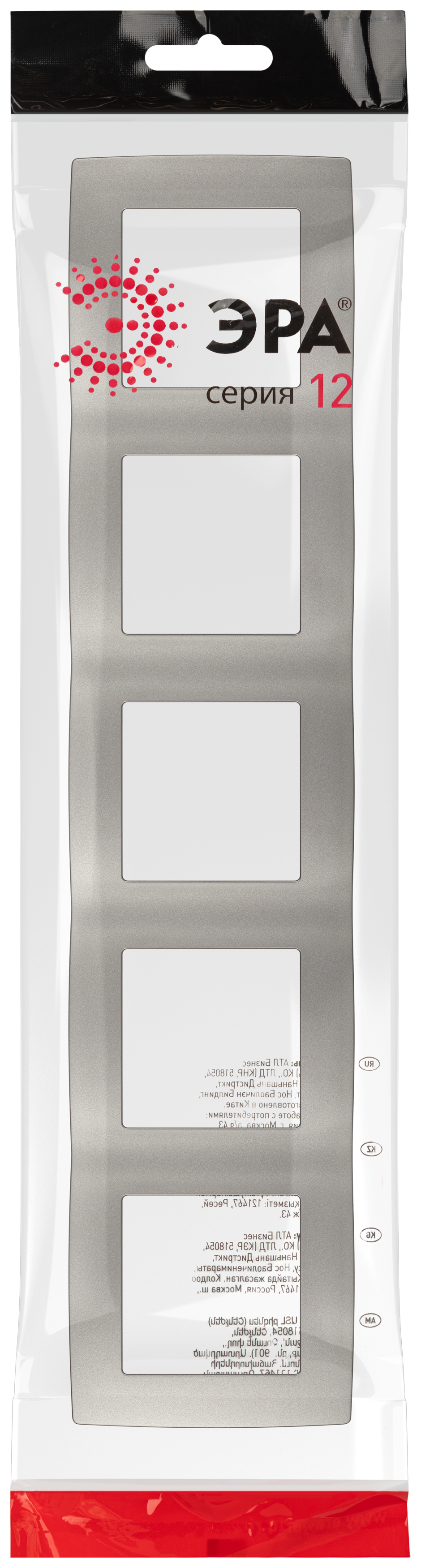 Рамка для выключателей и розеток 5-постовая серии Эра 12 цвет титан 12-5005-16. Сделана из поликарбоната. Используется только с механизмами серии Эра 12.