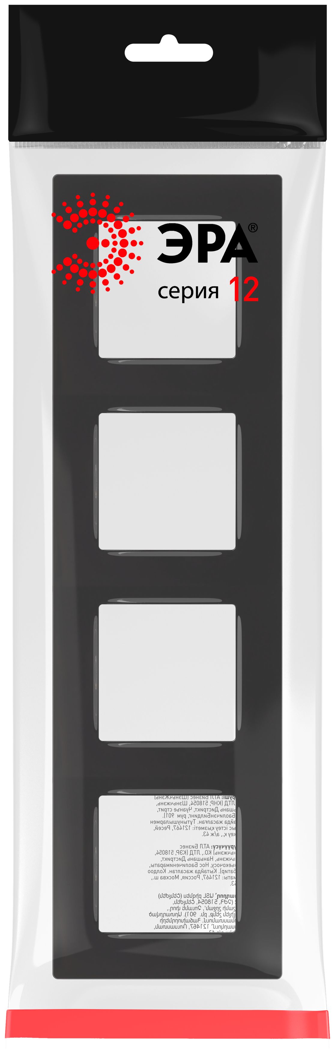 Рамка для розеток и выключателей ЭРА 12 12-5204-06 на 4 поста, Классик, цвет чёрный глянец. Обновленный дизайн. Рамка может быть установлена как горизонтально, так и вертикально. Размер 301х85х9мм.