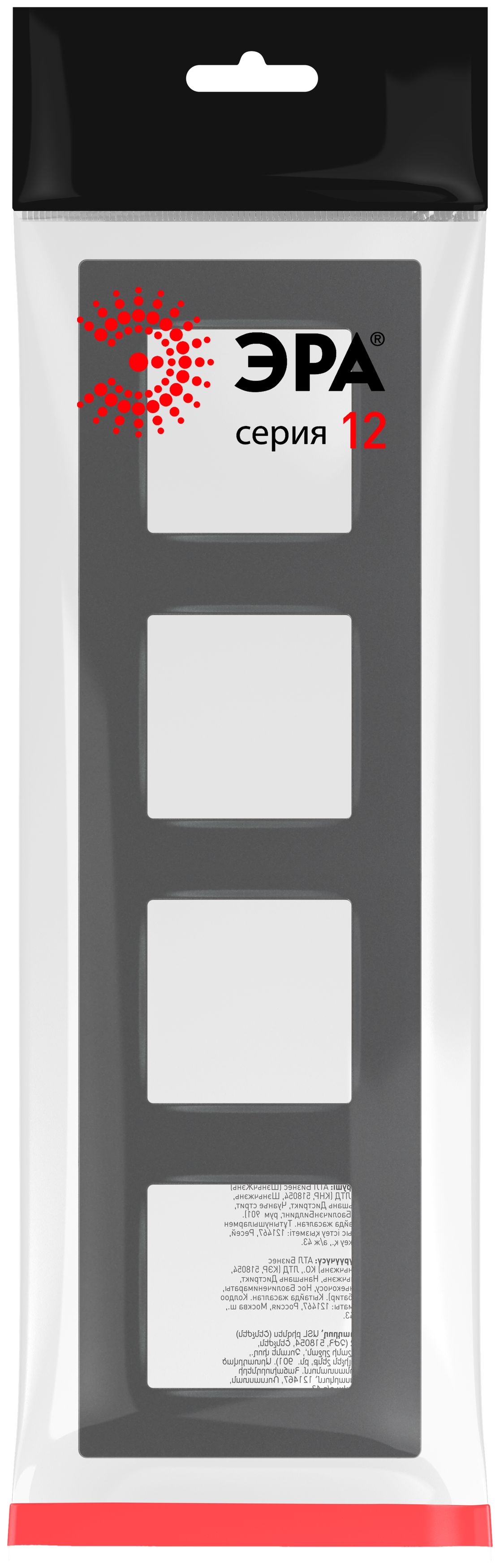 Рамка для розеток и выключателей ЭРА 12 12-5204-12 на 4 поста, Классик, цвет графит. Обновленный дизайн. Рамка может быть установлена как горизонтально, так и вертикально. Размер 301х85х9мм.