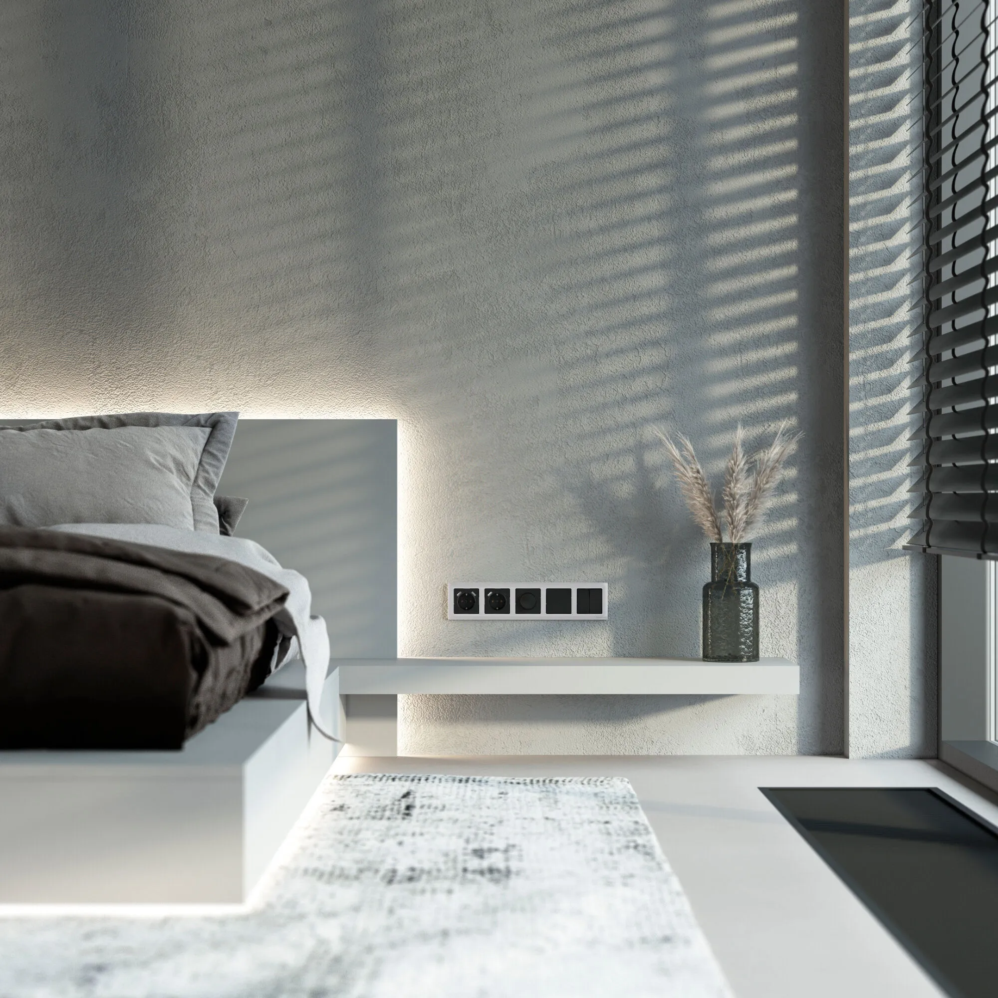 Коллекция Stark представлена моделями от одного до пяти постов, а также рамкой для двойной розетки. Коллекция совместима с любыми встраиваемыми механизмами Werkel.