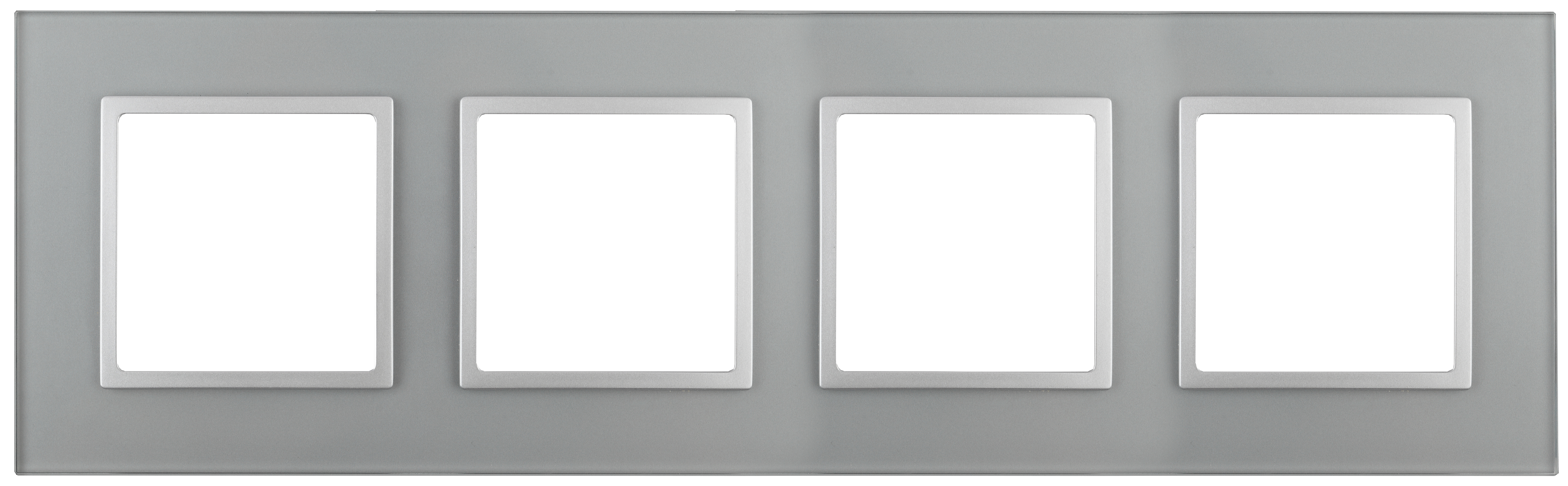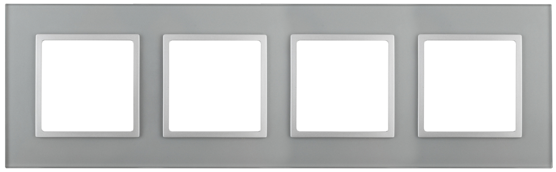 Рамка для выключателей и розеток 4-постовая серии Эра Elegance цвет алюминий 14-5104-03. Сделана из стекла. Используется только с механизмами серии Эра Elegance.