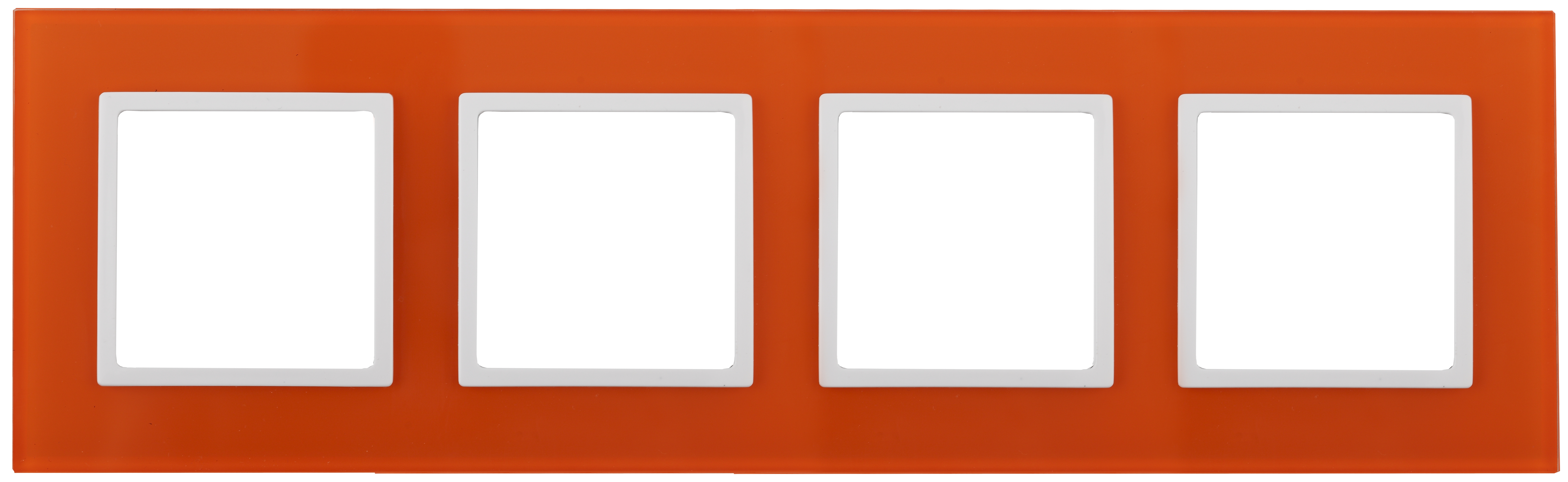 Рамка для выключателей и розеток 4-постовая серии Эра Elegance цвет оранжевый 14-5104-22. Сделана из стекла. Используется только с механизмами серии Эра Elegance.