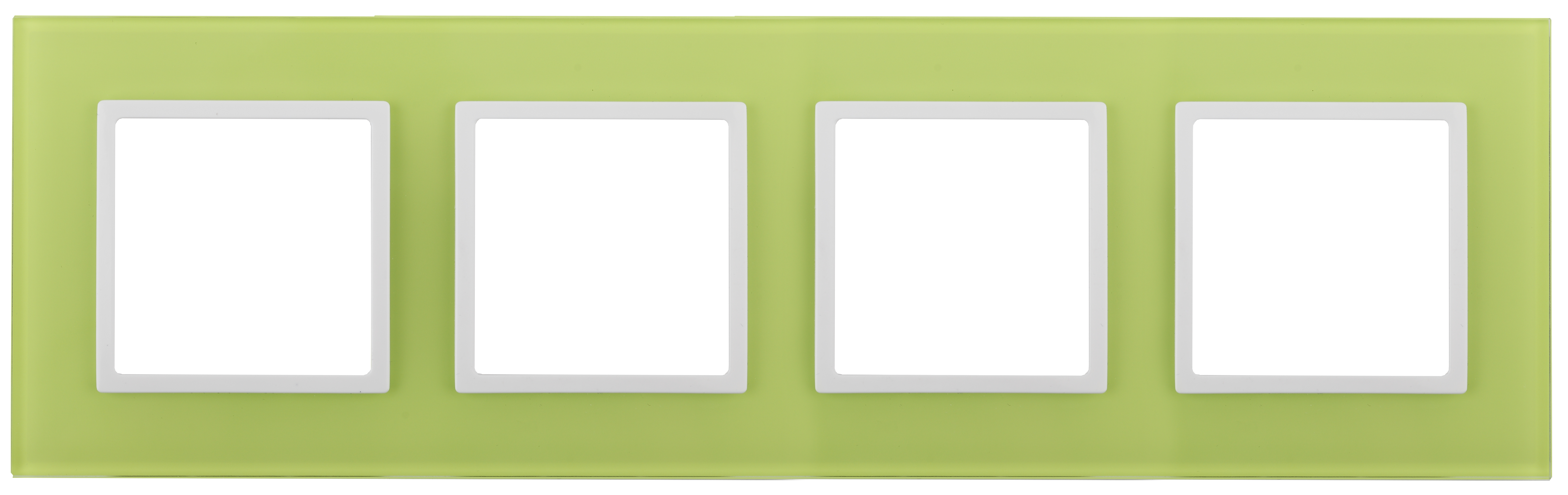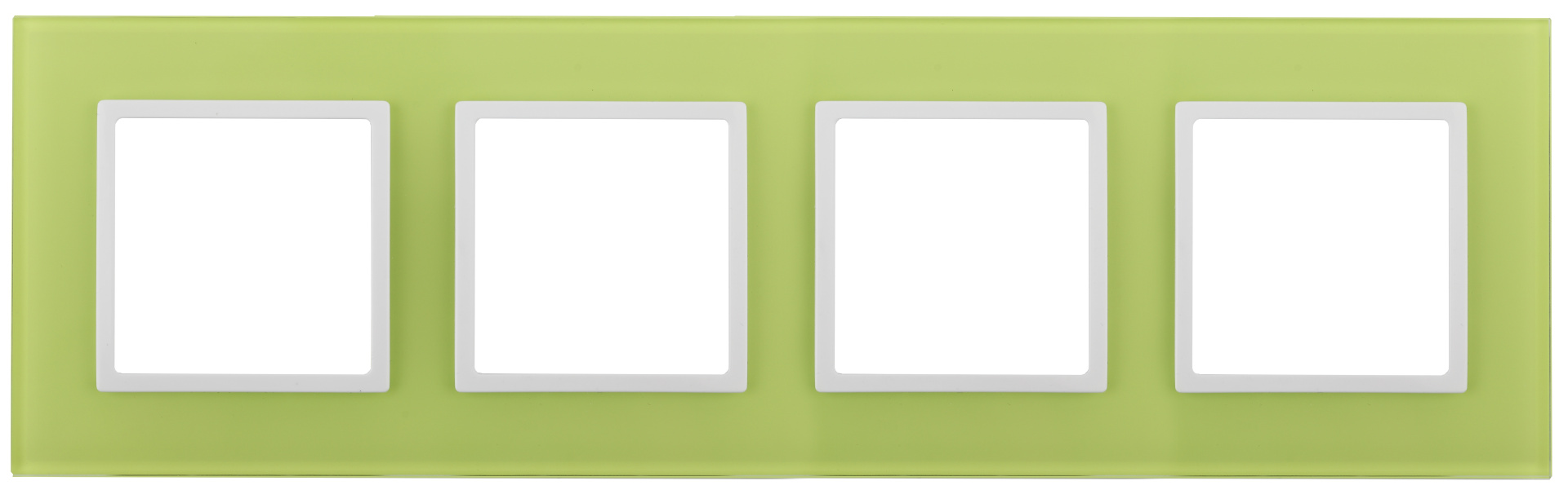 Рамка для выключателей и розеток 4-постовая серии Эра Elegance цвет лайм 14-5104-26. Сделана из стекла. Используется только с механизмами серии Эра Elegance.
