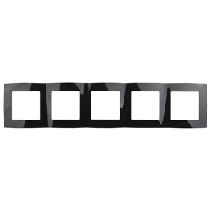 Рамка для выключателей и розеток 5-постовая горизонт. / вертик. серии Эра 12 цвет чёрный 12-5005-06. Сделана из поликарбоната. Используется только с механизмами серии Эра 12.