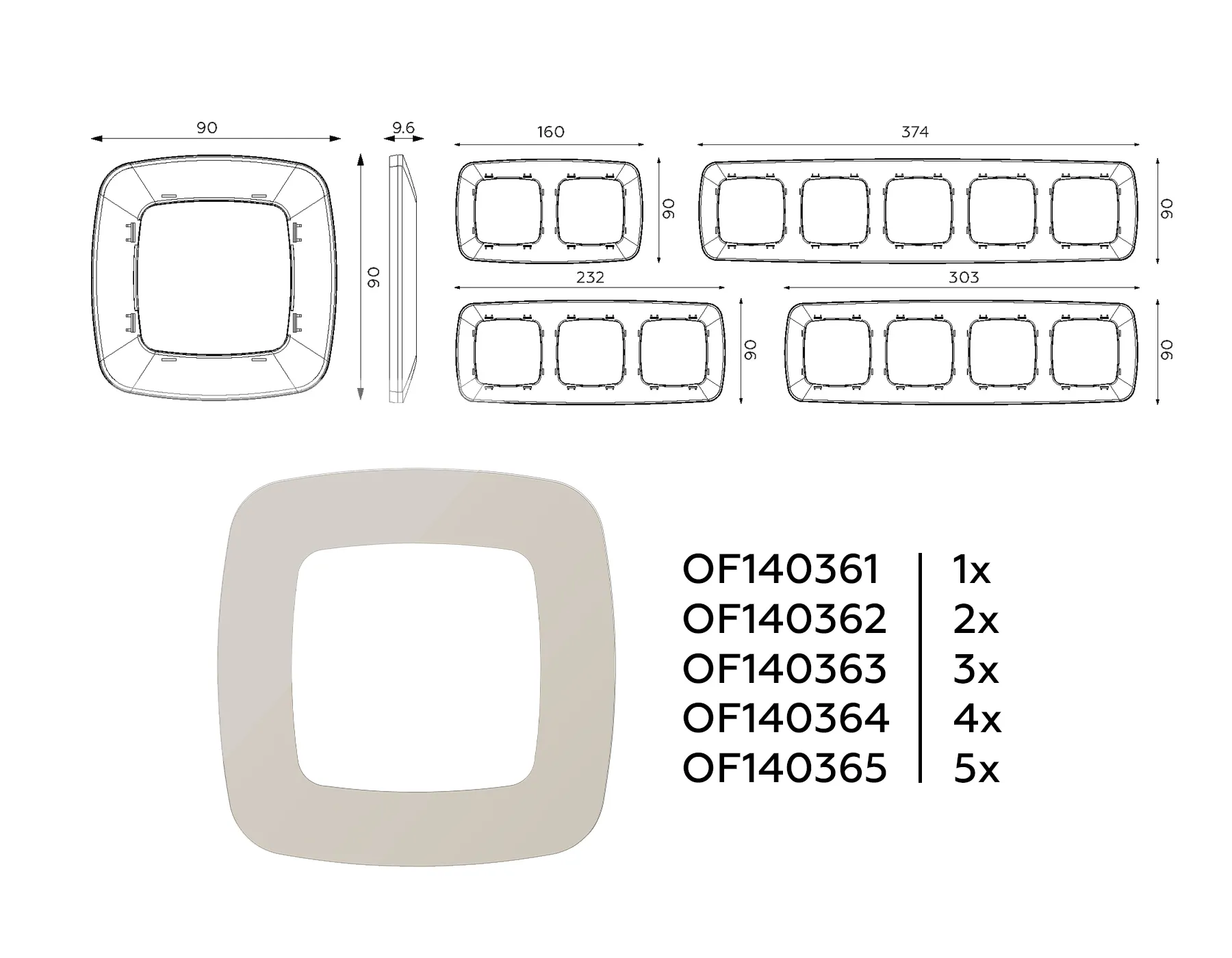 Лицевая панель OMEGA (Серо-бежевый матовый) для 1-кл выключателей с подсветкой QUAN OP3620