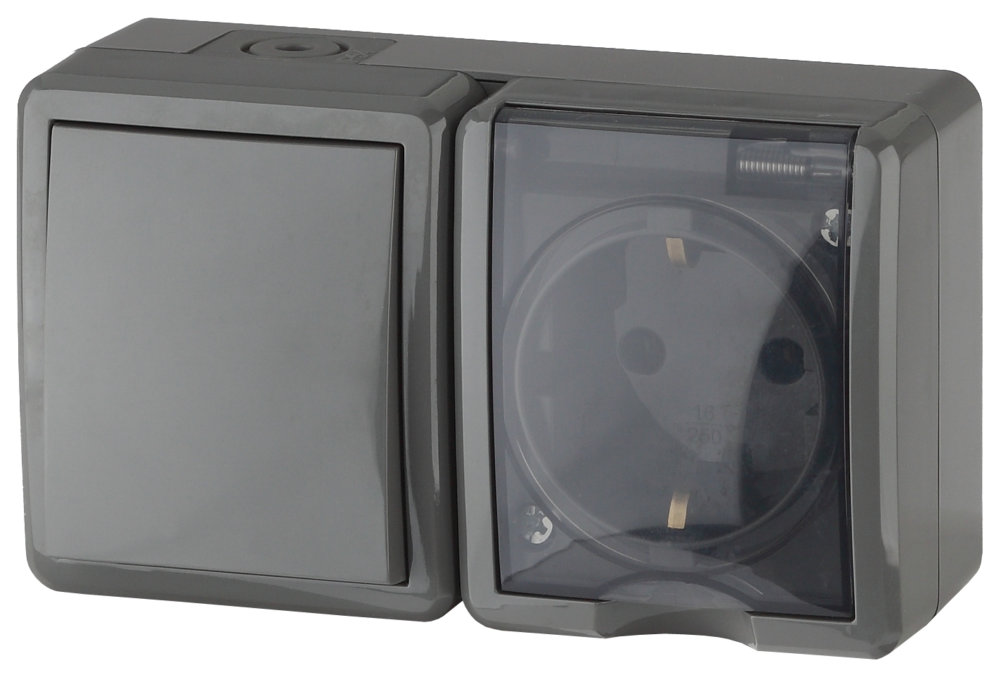 Блок розетка с выключателем влагозащищённый IP54 серии Эра Эксперт открытой установки цвет серый 11-7401-03. Номинальные характеристики 16А 250В. Устройство выполнено из качественного поликарбоната, оснащёно уникальными винтовыми клеммами ЭКСПЕРТ для максимально качественного зажима кабеля в механизме.
