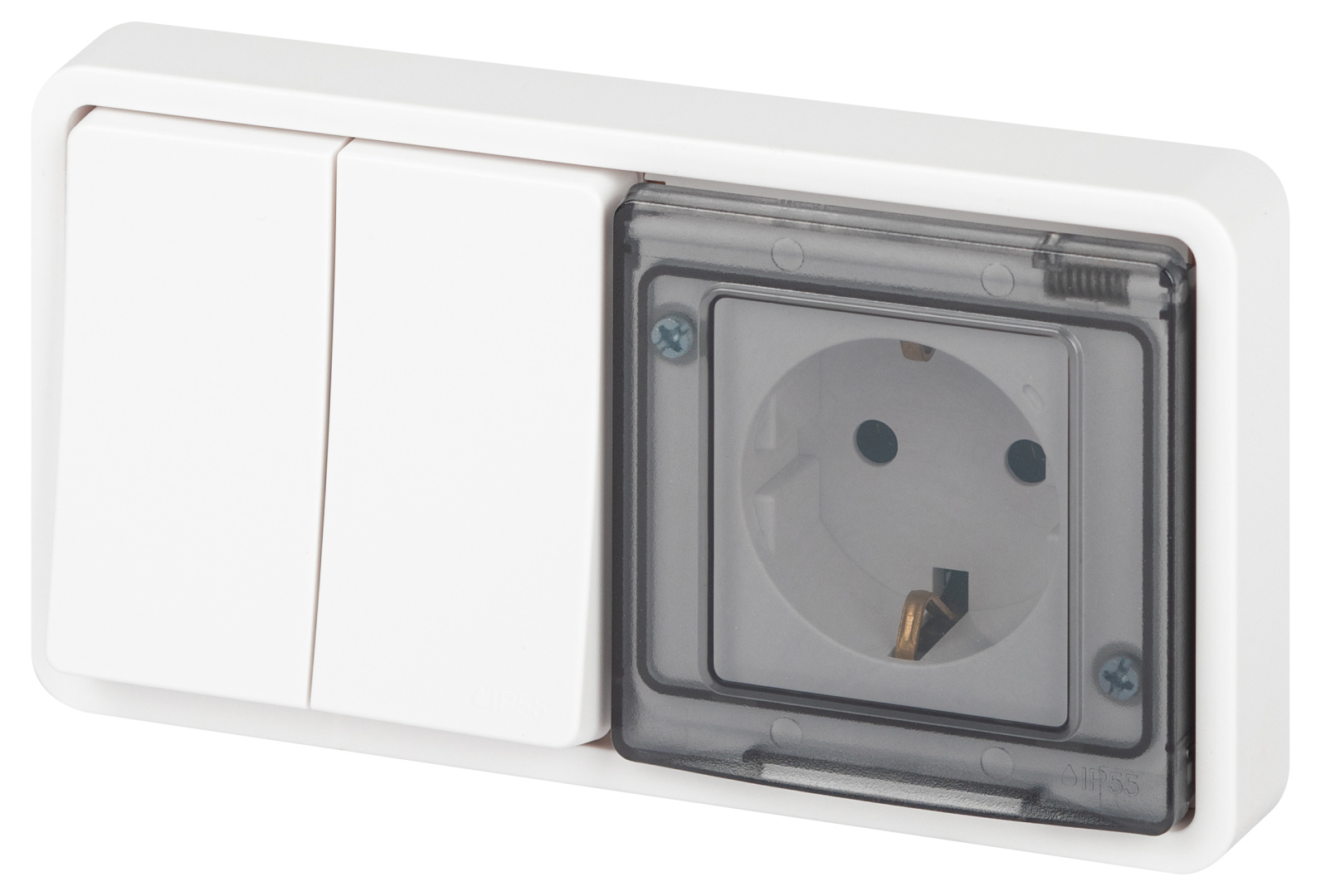 Блок розетка с выключателем влагозащищённый IP55 серии Эра Эксперт скрытой установки цвет белый 11-7522-01. Номинальные характеристики 16А 250В. Устройство выполнено из качественного поликарбоната, оснащёно уникальными винтовыми клеммами ЭКСПЕРТ для максимально качественного зажима кабеля в механизме.