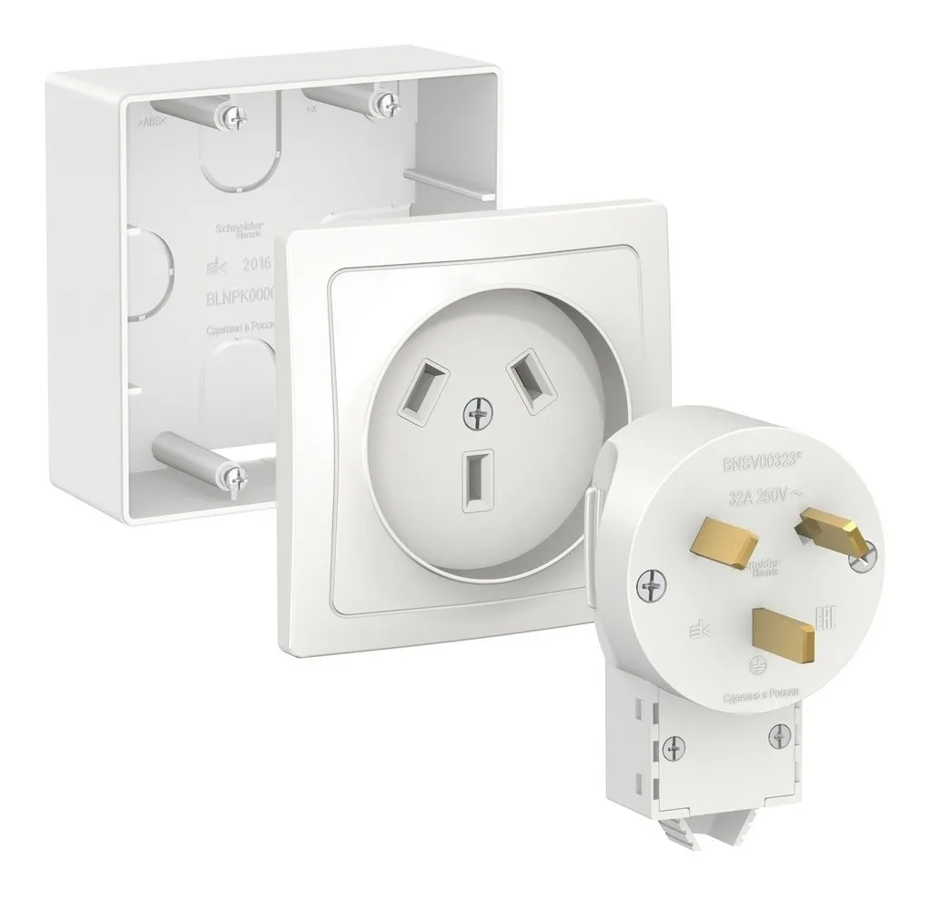 Комплект силовой 2К+З розетка, вилка, подъемная коробка Schneider Electric Blanca 32A 250V белый BLNSK003231