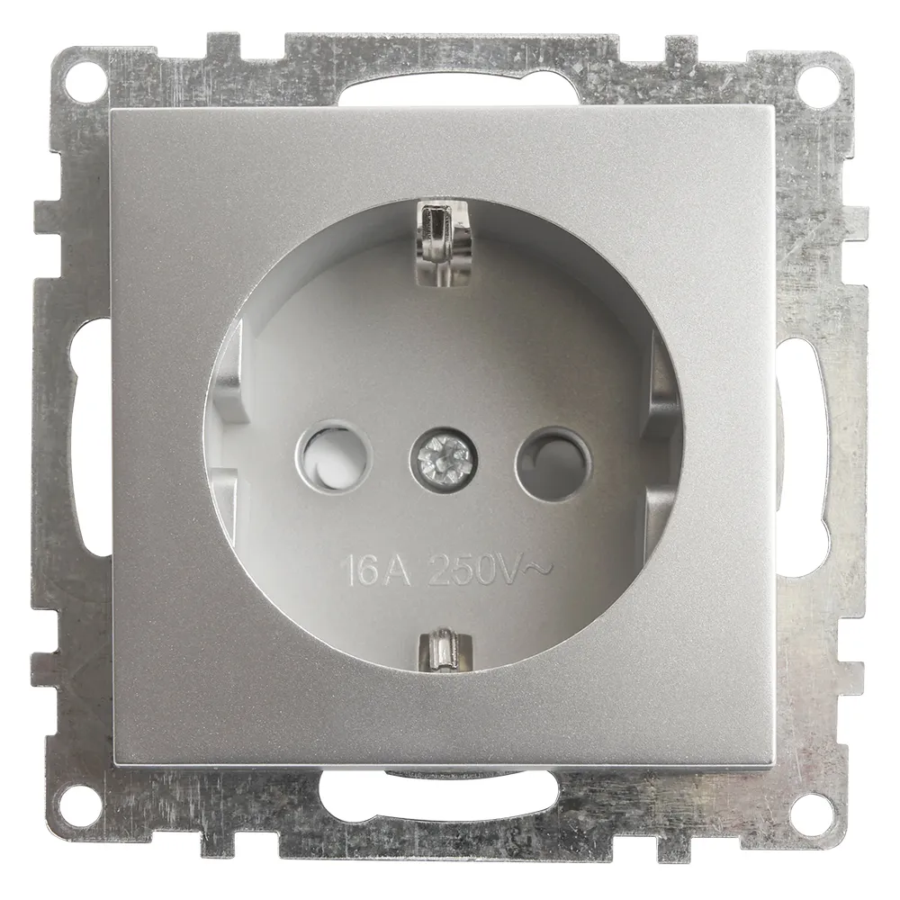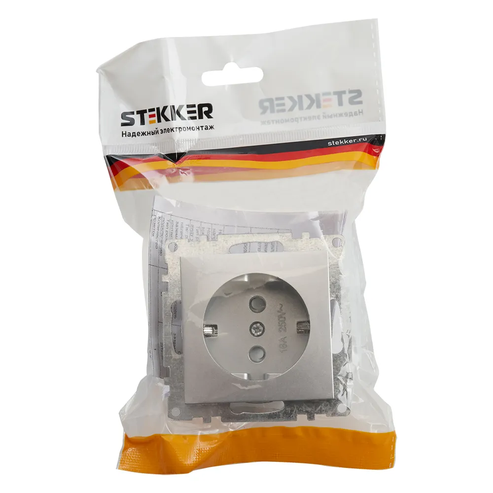 Розетка 1-местная с/з (механизм), STEKKER GLS16-7110-03, 250В, 16А с защитной шторкой, серия Катрин, серебро 39582