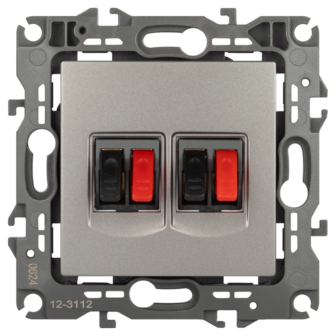 Розетка двойная аудио стерео серии Эра 12 скрытой установки механизм цвет титан 12-3112-16. Сделана из поликарбоната. Монтаж в подрозетник производится и на лапки, и на винты. Рамки приобретаются отдельно.