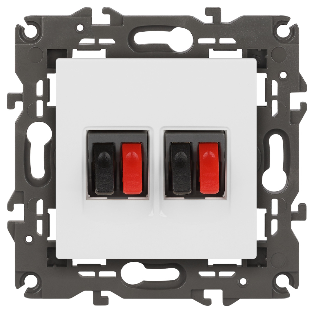 Розетка двойная аудио стерео серии Эра Elegance цвет белый 14-3112-01. Рамки приобретаются отдельно. Рамки Эра Elegance ПЛАСТИК: 1 пост 14-5001-хх, 2 поста 14-5002-хх, 3 поста 14-5003-хх, 4 поста 14-5004-хх, 5 постов 14-5005-хх; СТЕКЛО: 1 пост 14-5101-хх, 2 поста 14-5102-хх, 3 поста 14-5103-хх, 4 поста 14-5104-хх; МЕТАЛЛ: 1 пост 14-5201-хх, 2 поста 14-5202-хх, 3 поста 14-5203-хх, 4 поста 14-5204-хх; ДЕРЕВО: 1 пост 14-5301-хх, 2 поста 14-5302-хх, 3 поста 14-5303-хх, 4 поста 14-5304-хх (хх - код цвета: 00-прозрачный, 01-белый, белёный дуб, 02-слоновая кость, 03-алюминий, 04-шампань, 05-чёрный, чёрное дерево, 07-ясень, 09-дуб, 10-венге, 11-клён, 14-медь, 21-жёлтый, 22-оранжевый, 23-красный, 25-бордо, 26-лайм, 27-зелёный, 28-голубой, 29-синий, 30-розовый, 31-мокко, 32-серый, 41-сталь, 42-титан).