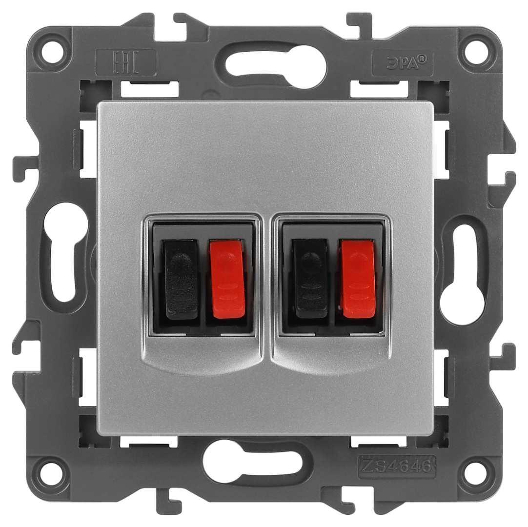 Розетка двойная аудио стерео серии Эра Elegance цвет алюминий 14-3112-03. Рамки приобретаются отдельно. Рамки Эра Elegance ПЛАСТИК: 1 пост 14-5001-хх, 2 поста 14-5002-хх, 3 поста 14-5003-хх, 4 поста 14-5004-хх, 5 постов 14-5005-хх; СТЕКЛО: 1 пост 14-5101-хх, 2 поста 14-5102-хх, 3 поста 14-5103-хх, 4 поста 14-5104-хх; МЕТАЛЛ: 1 пост 14-5201-хх, 2 поста 14-5202-хх, 3 поста 14-5203-хх, 4 поста 14-5204-хх; ДЕРЕВО: 1 пост 14-5301-хх, 2 поста 14-5302-хх, 3 поста 14-5303-хх, 4 поста 14-5304-хх (хх - код цвета: 00-прозрачный, 01-белый, белёный дуб, 02-слоновая кость, 03-алюминий, 04-шампань, 05-чёрный, чёрное дерево, 07-ясень, 09-дуб, 10-венге, 11-клён, 14-медь, 21-жёлтый, 22-оранжевый, 23-красный, 25-бордо, 26-лайм, 27-зелёный, 28-голубой, 29-синий, 30-розовый, 31-мокко, 32-серый, 41-сталь, 42-титан).