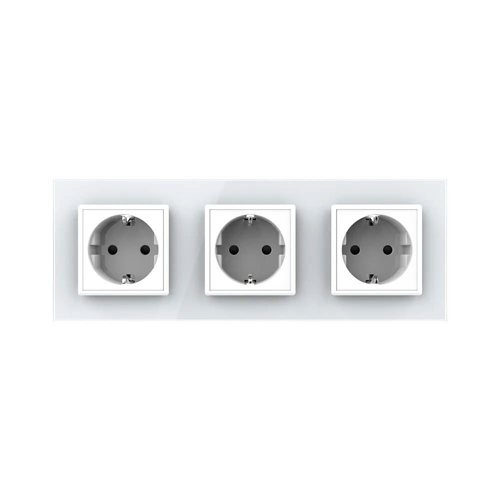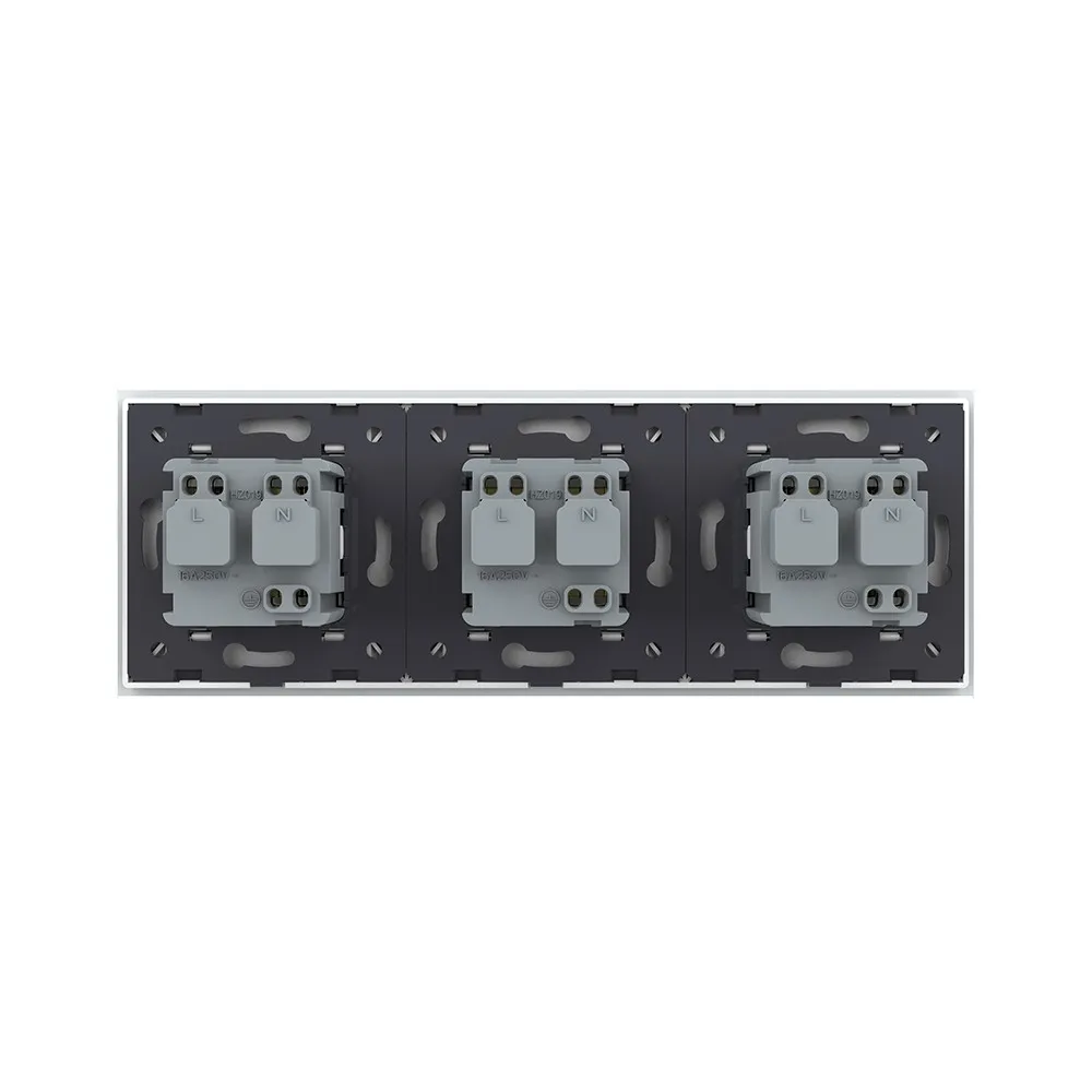 Розетка электрическая 16A Livolo на 3 поста со стеклянной рамкой LIVOLO используется для подключения к электрической сети переменного тока 110-250 В, 50-60 Гц различных приборов и агрегатов бытового и аналогичного назначения.