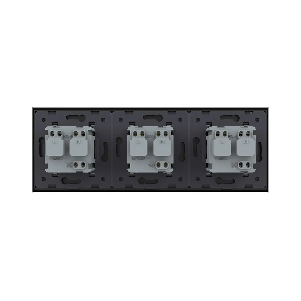 Розетка электрическая 16A Livolo на 3 поста со стеклянной рамкой LIVOLO используется для подключения к электрической сети переменного тока 110-250 В, 50-60 Гц различных приборов и агрегатов бытового и аналогичного назначения.
