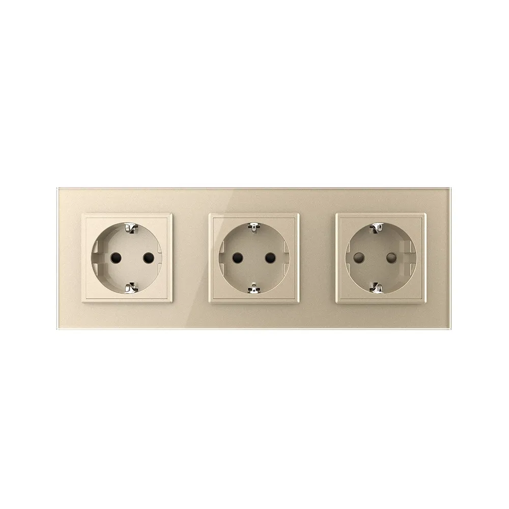 Розетка электрическая 16A Livolo, 3 поста, цвет шампань