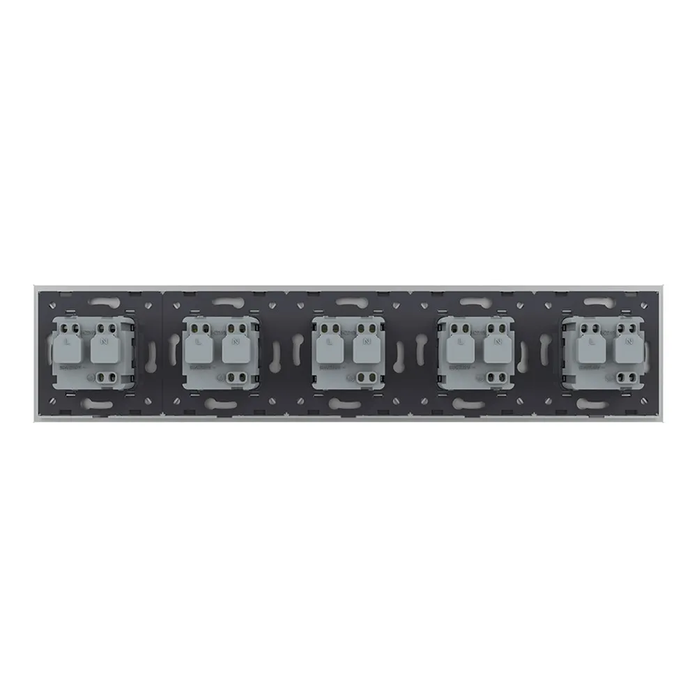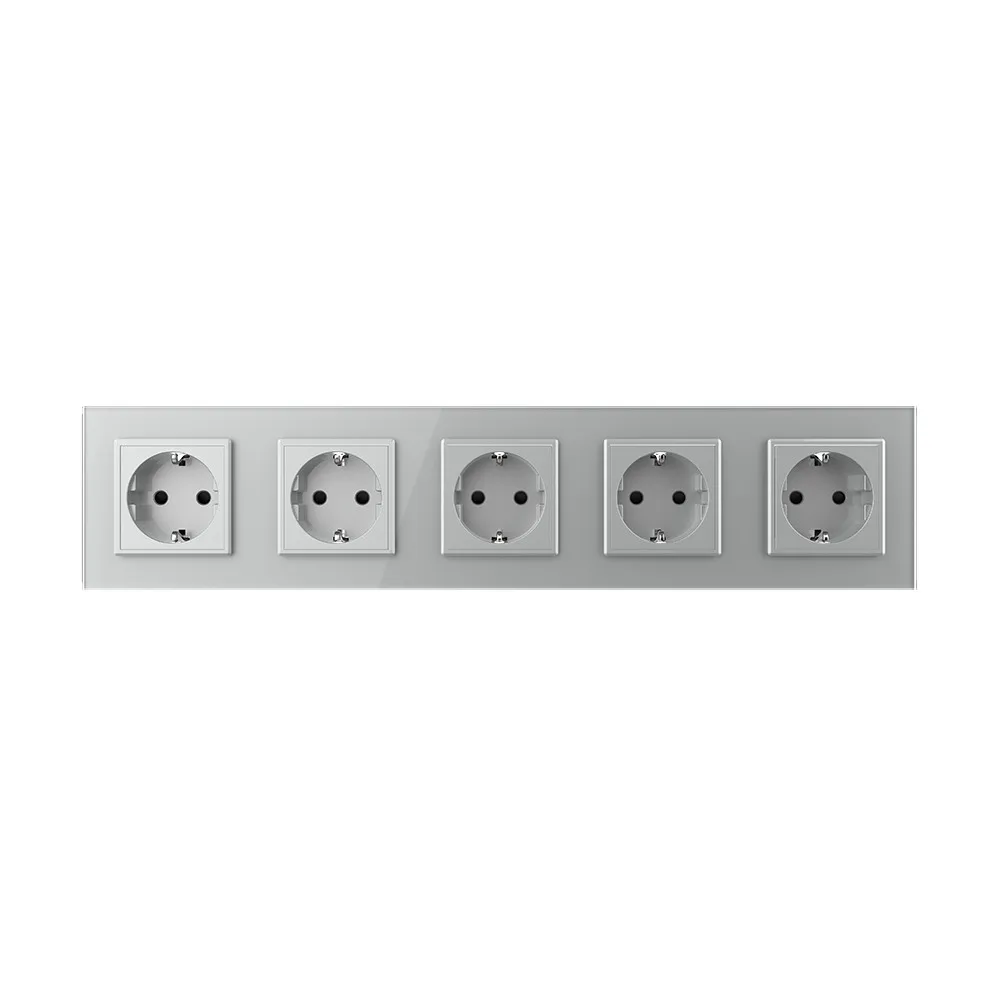 Розетка электрическая 16A Livolo на 5 постов со стеклянной рамкой LIVOLO используется для подключения к электрической сети переменного тока 110-250 В, 50-60 Гц различных приборов и агрегатов бытового и аналогичного назначения.