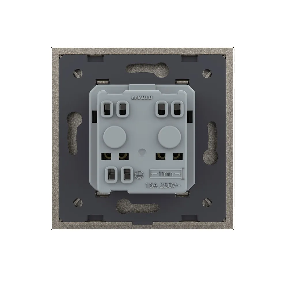Розетка электрическая 16A с водонепроницаемой крышкой Livolo на 1 пост со стеклянной рамкой LIVOLO используется для подключения к электрической сети переменного тока 110-250 В, 50-60 Гц различных приборов и агрегатов бытового и аналогичного назначения.